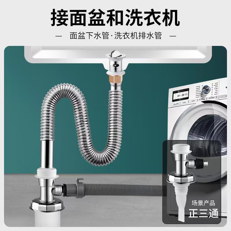 洗衣机下水止逆阀防反水下水管三头通地漏二合一排水管防溢水接头