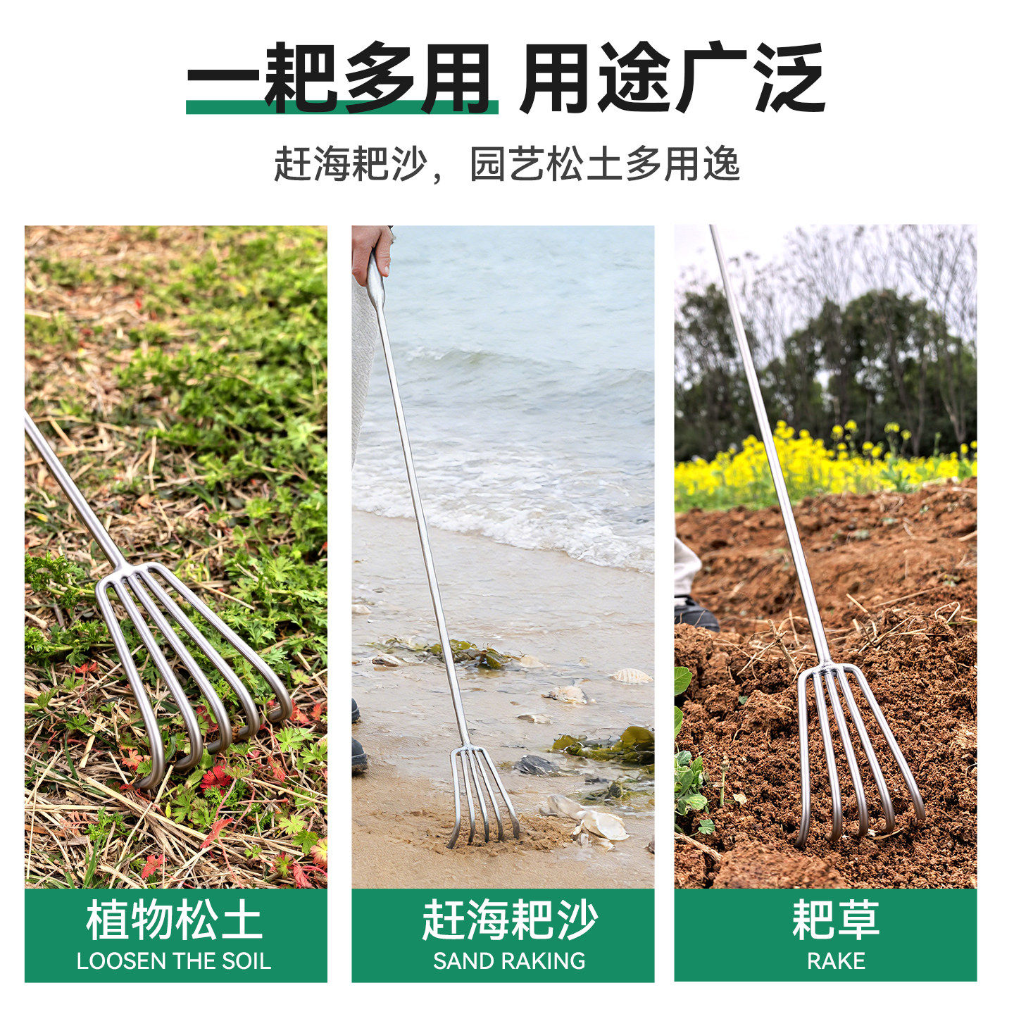 不锈钢园艺小耙子家用花盆松土种花捡菌子神器挖蛤蜊赶海专用工具