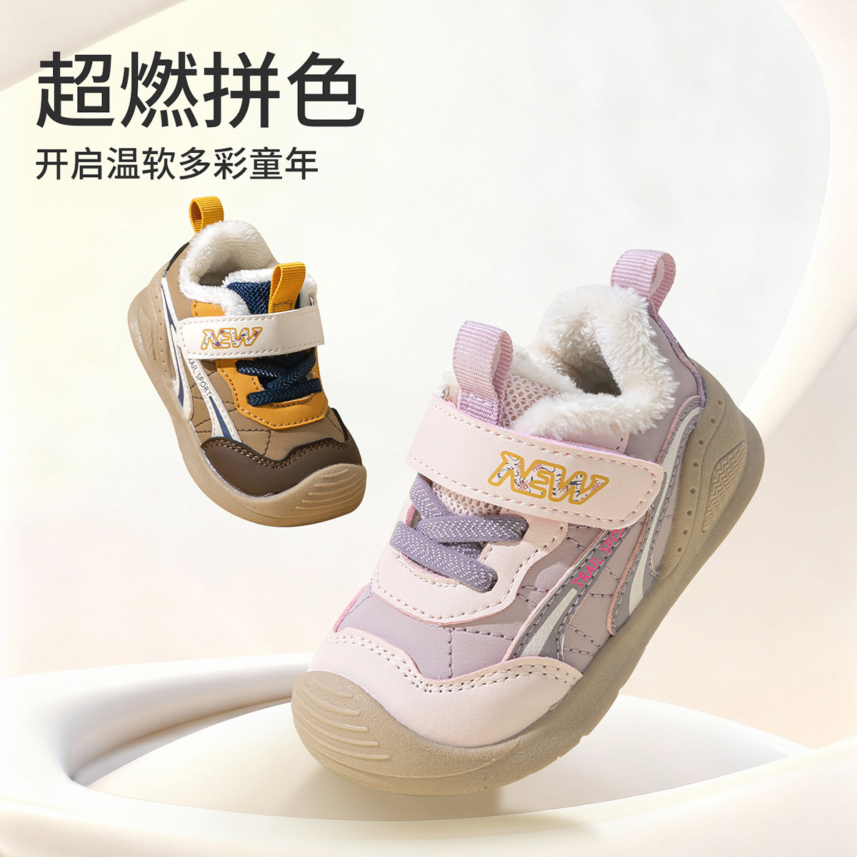 婧麒婴儿学步鞋2025新款秋冬季男女宝宝防滑软底加绒保暖运动棉鞋