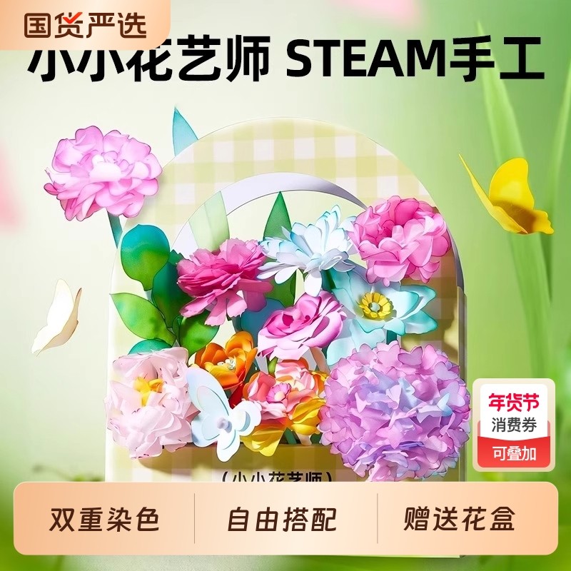手工diy材料花朵生日礼物女孩儿童玩具3到6岁花束贺卡送老师小花