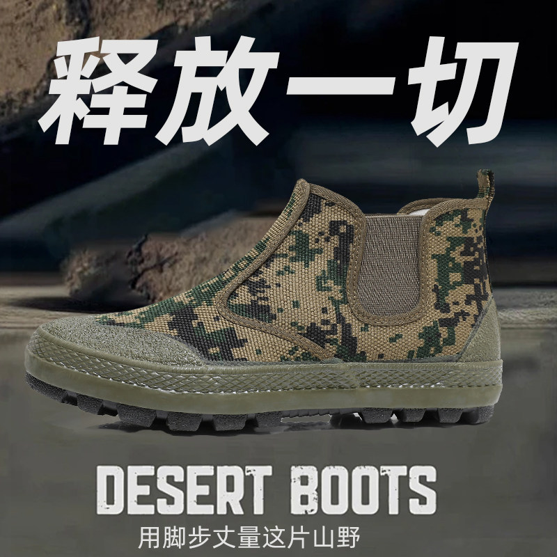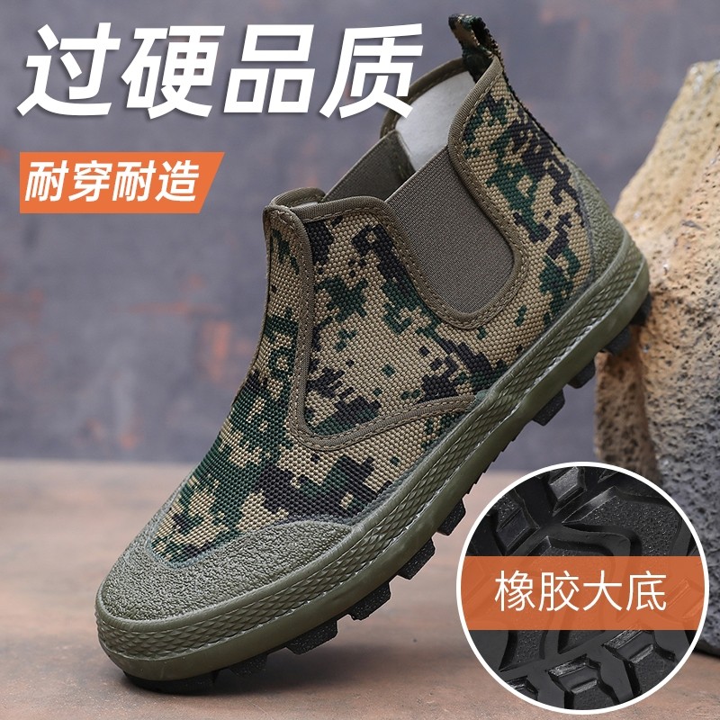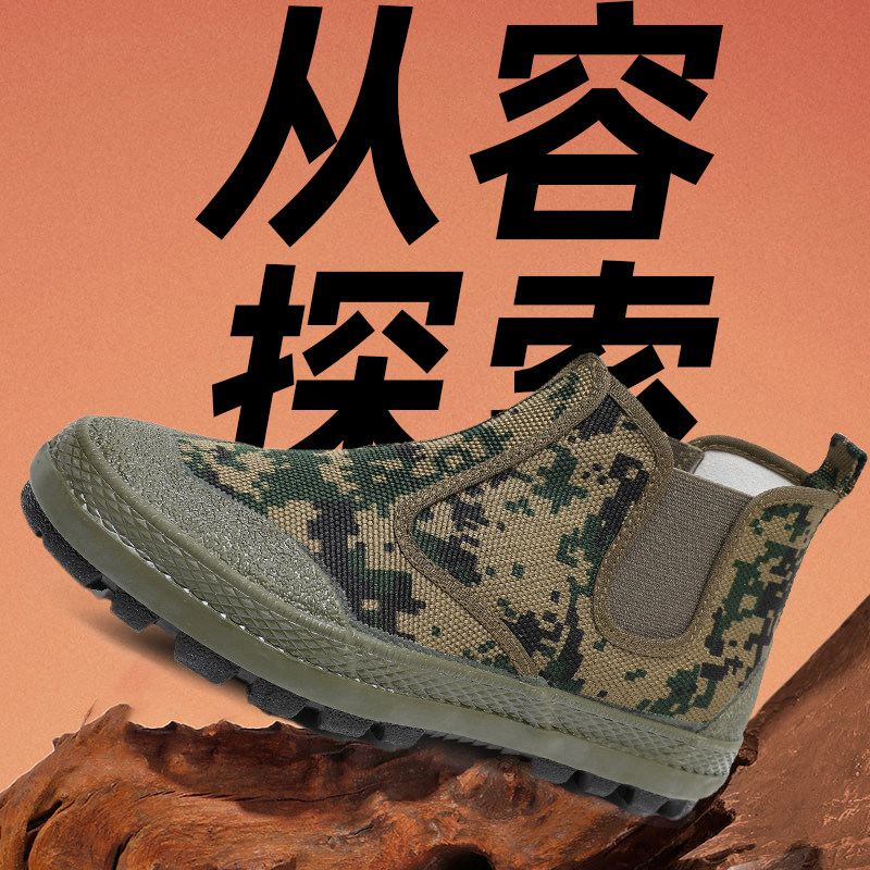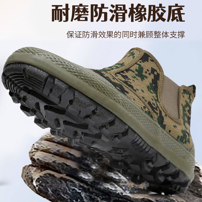 新款元宝鞋防滑迷彩耐磨解放鞋橡胶大底帆布鞋户外高帮登山干活鞋