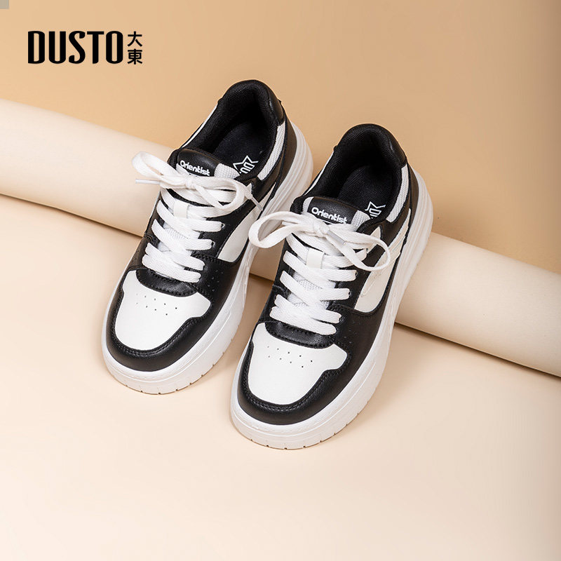 大东小白鞋女鞋2025秋季新款时尚休闲简约平底系带中跟圆头Q0350