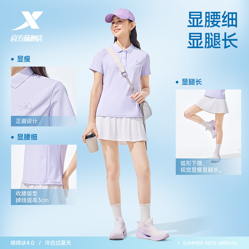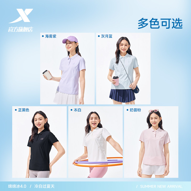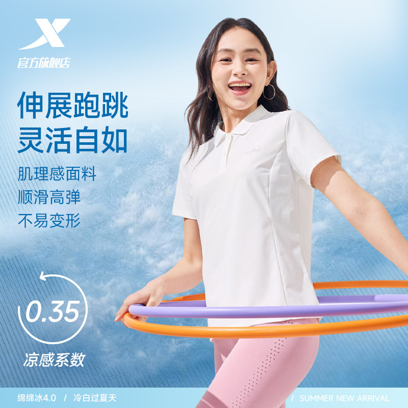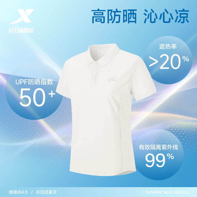 特步防晒POLO衫女士2026年夏季新款瑜伽冰丝运动服健身短袖T恤女