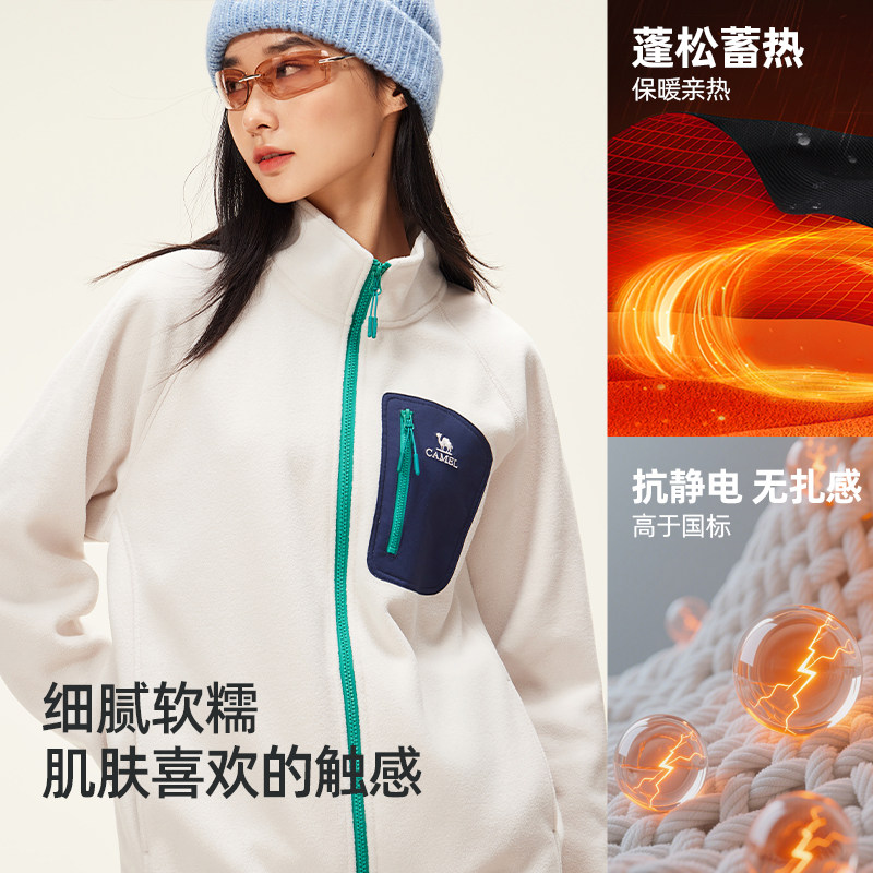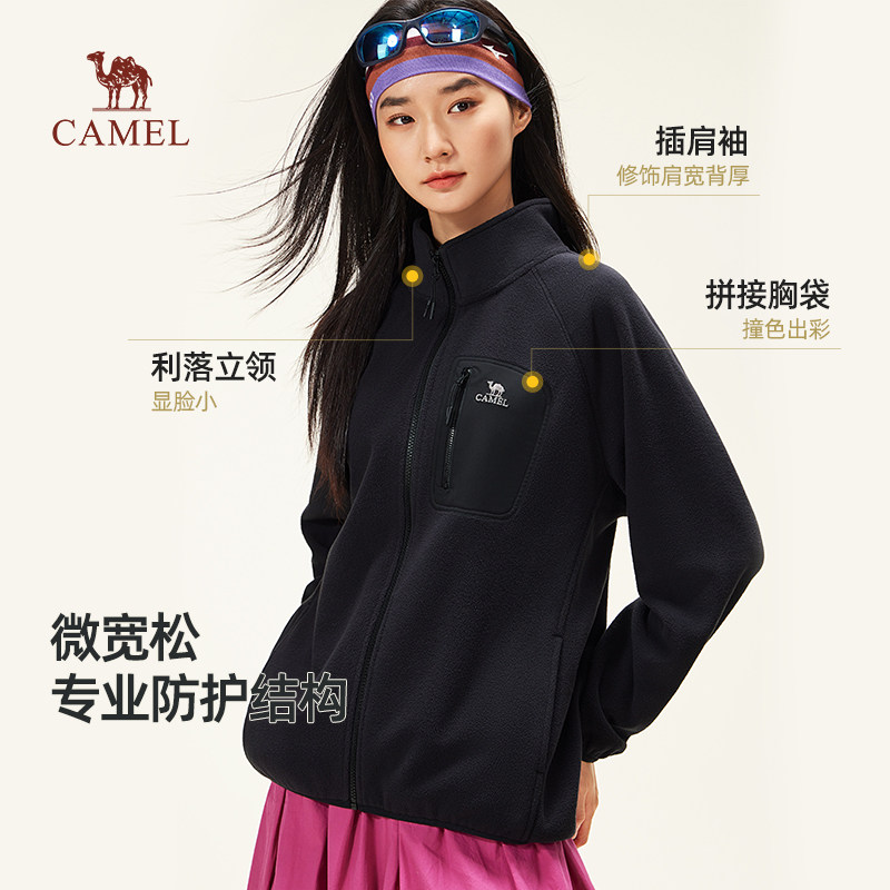 骆驼女装夹克摇粒绒外套2026春季户外加绒加厚保暖情侣同款抓绒衣