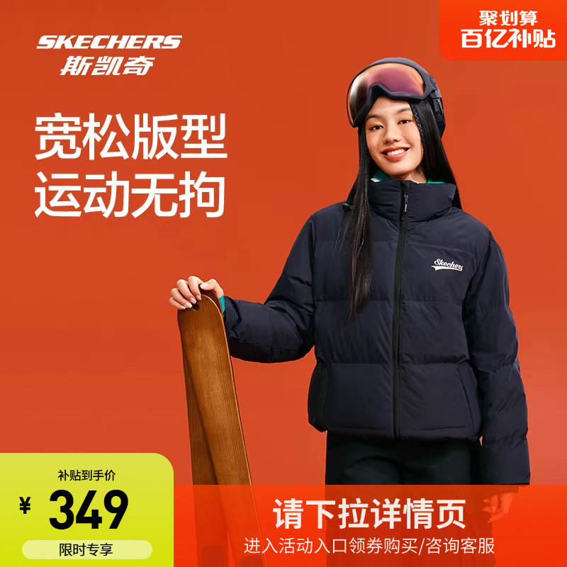 斯凯奇面包羽绒服男女同款冬季梭织短款立领防泼水中性运动外套
