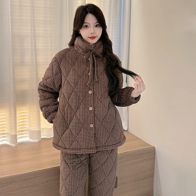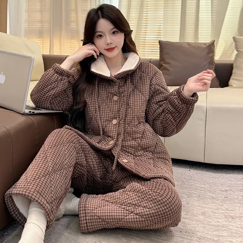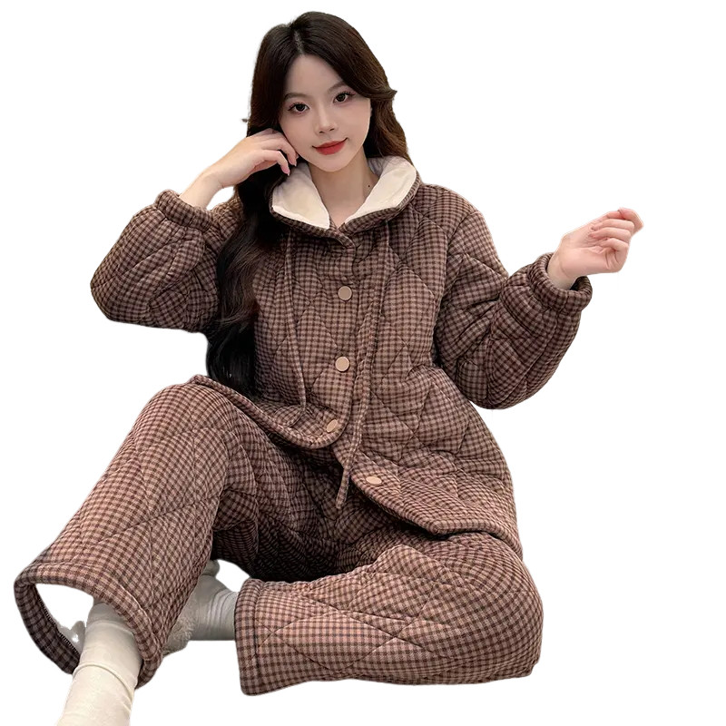 睡衣女款2025新款冬高级感三层夹棉加厚冬天女士珊瑚绒保暖家居服