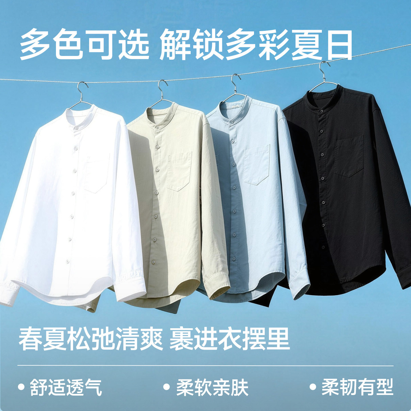 猫人亨利领长袖衬衫男高级感痞帅男士衬衣2026春季立领外套男款J