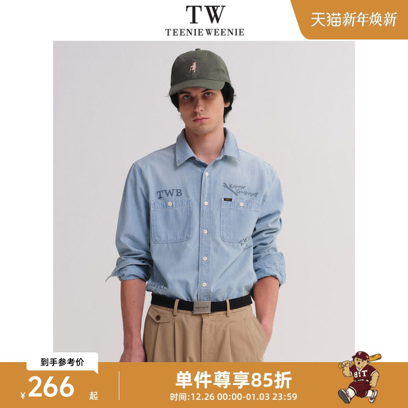 TeenieWeenie小熊男装衬秋季高级新款翻领休闲通勤牛仔外套衬衫