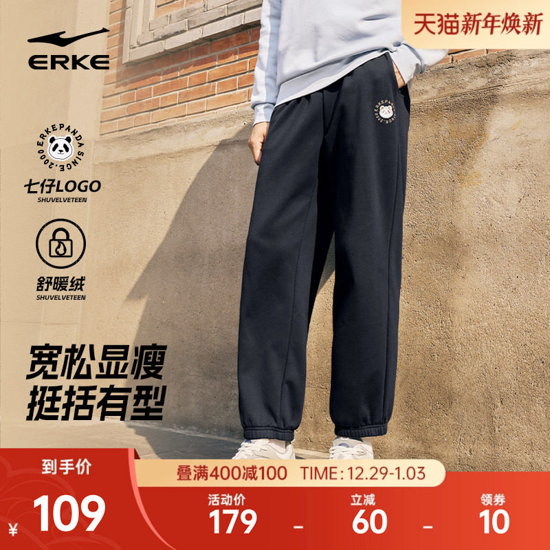 七仔丨鸿星尔克加厚裤子男士新款卫裤男子直筒运动裤冬装休闲男裤