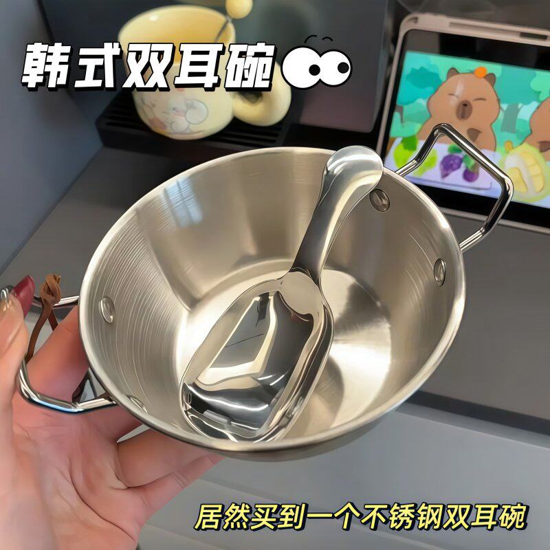 早餐沙拉双耳碗勺子个人家用餐具新款高颜值宿舍不锈钢燕麦泡面碗