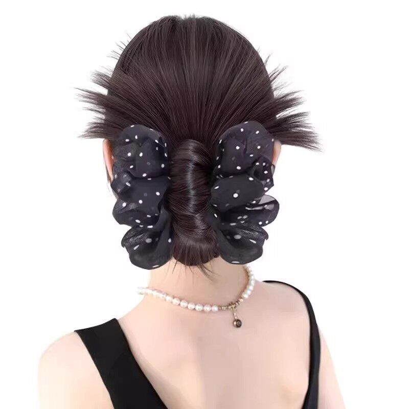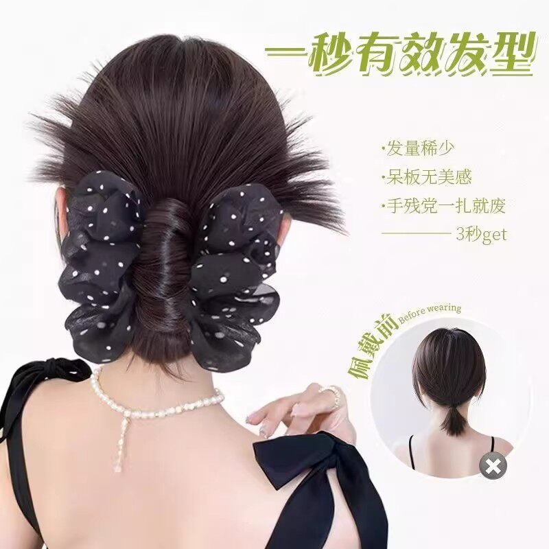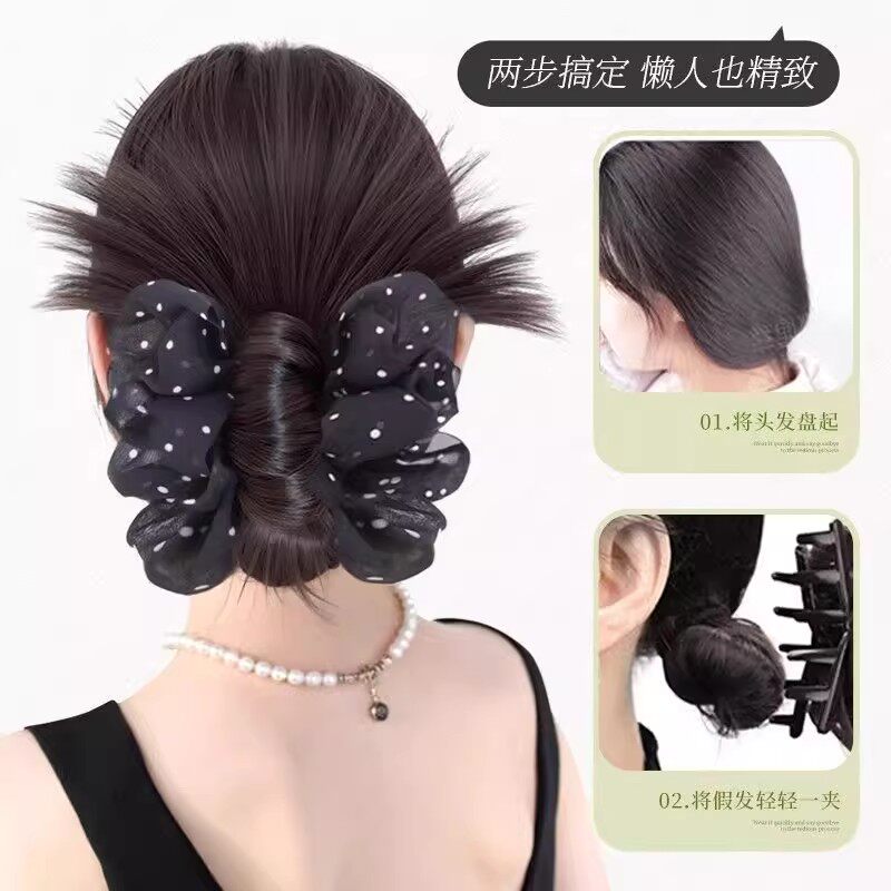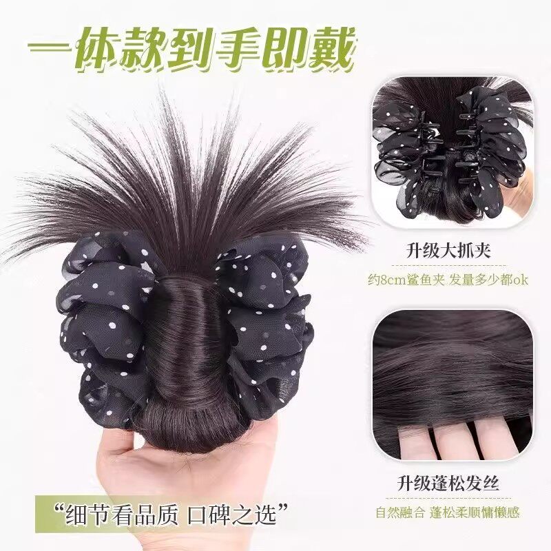俏瑶慵懒感波点抓夹鸡毛丸子头假发后脑低扎盘发神器自然蓬松假发