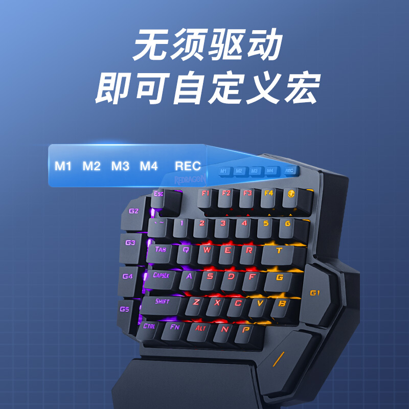 红龙K585电竞单手游戏机械键盘47键台式电脑吃鸡自定义宏编程青轴