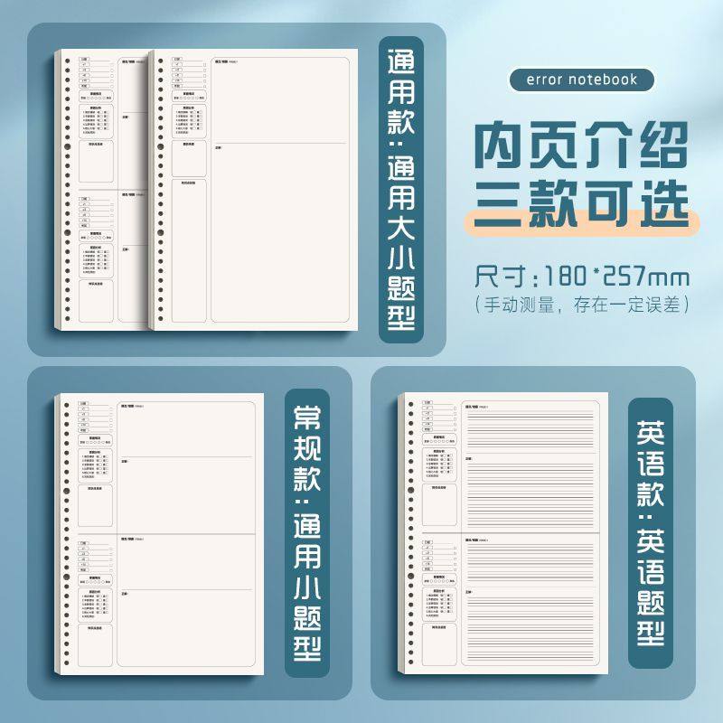 加厚B5不硌手活页错题本初中生专用高中生数学考研大学生小学生笔记本可拆卸英语全套纠错本集改错本整理神器