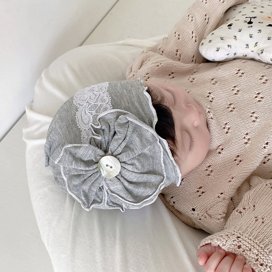 可爱花朵婴儿帽子春秋莫代尔女宝宝初生新生儿护囟门无骨胎帽冬季