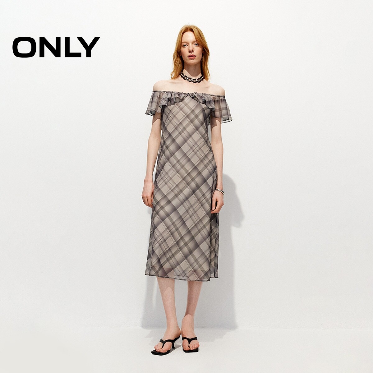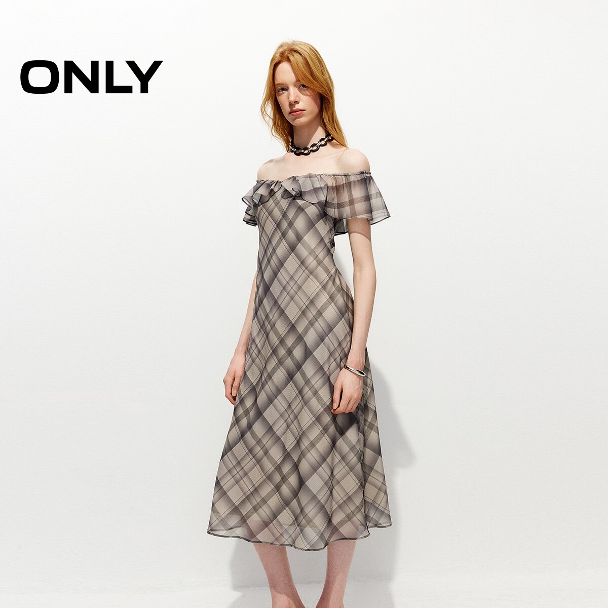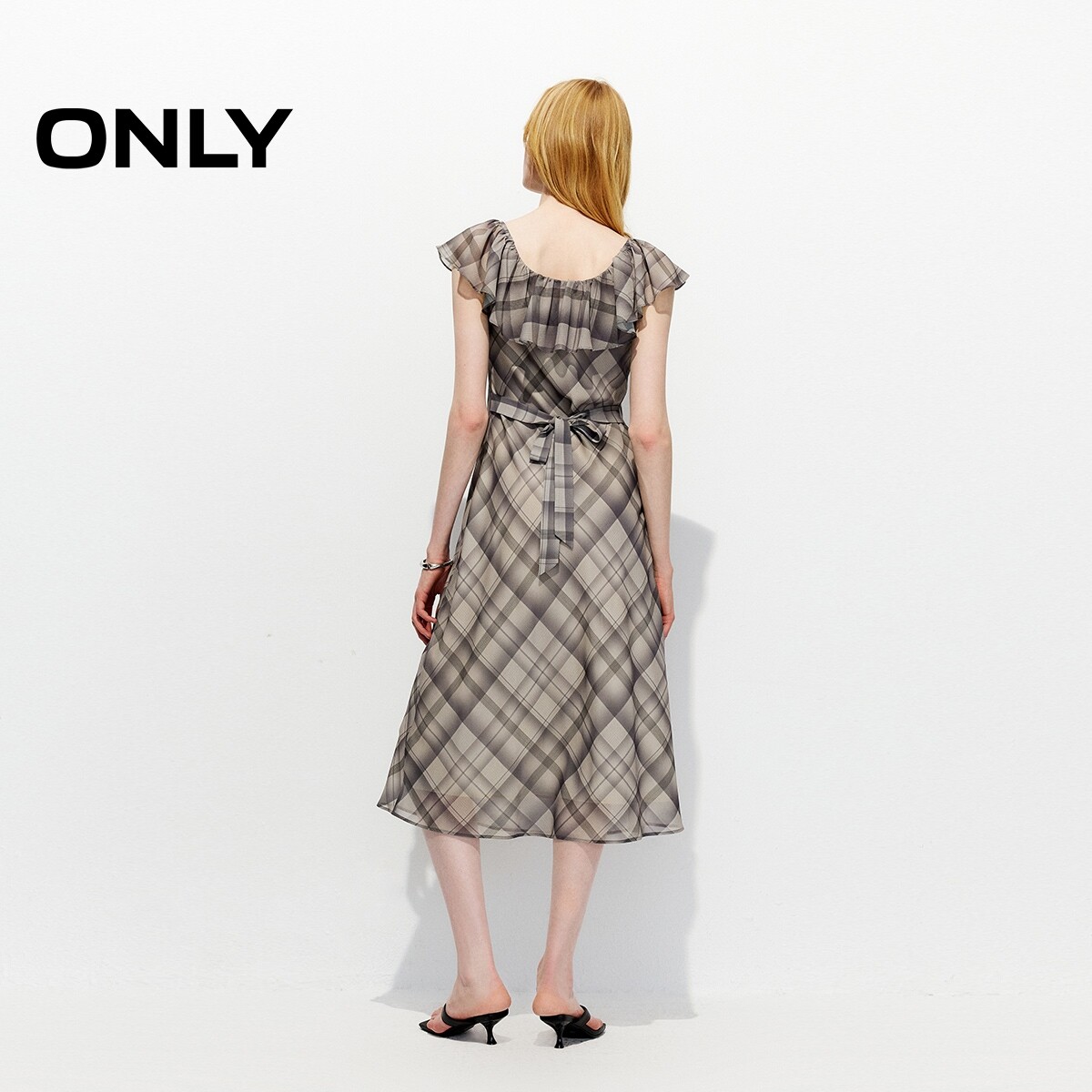 ONLY2026春季新款垂感弹力荷叶边领腰间系带修身显瘦连衣裙女