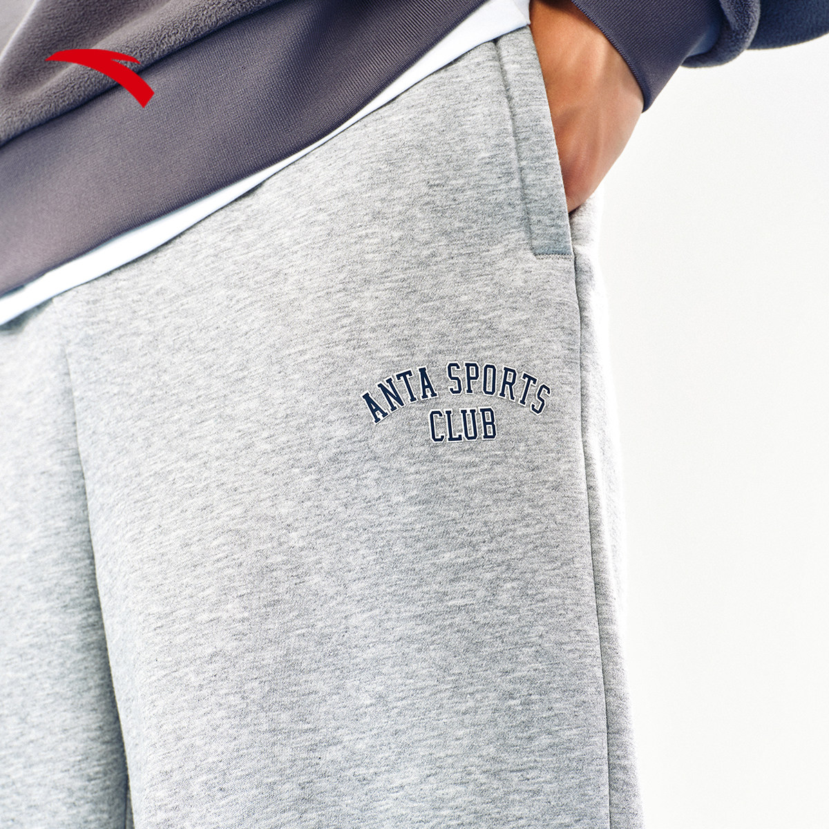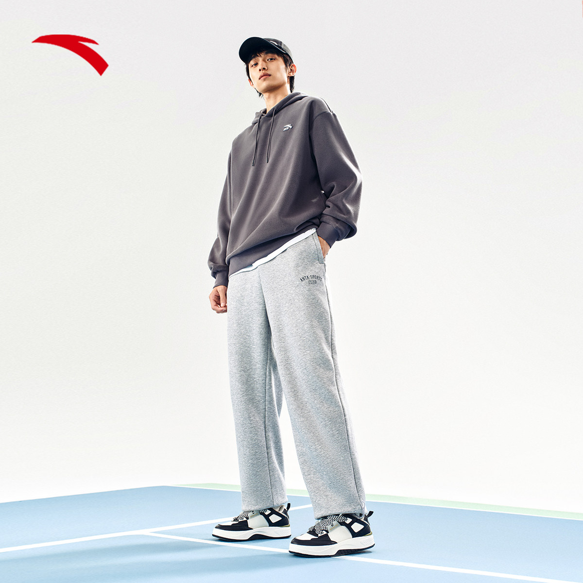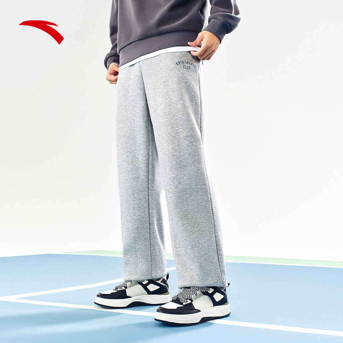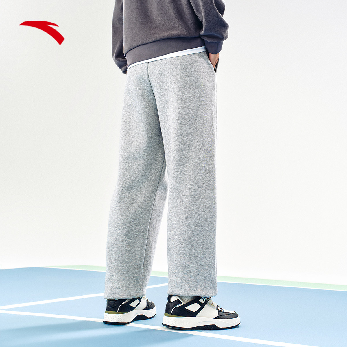 安踏加绒运动长裤男冬季美式复古宽松休闲直筒运动裤子152448302N