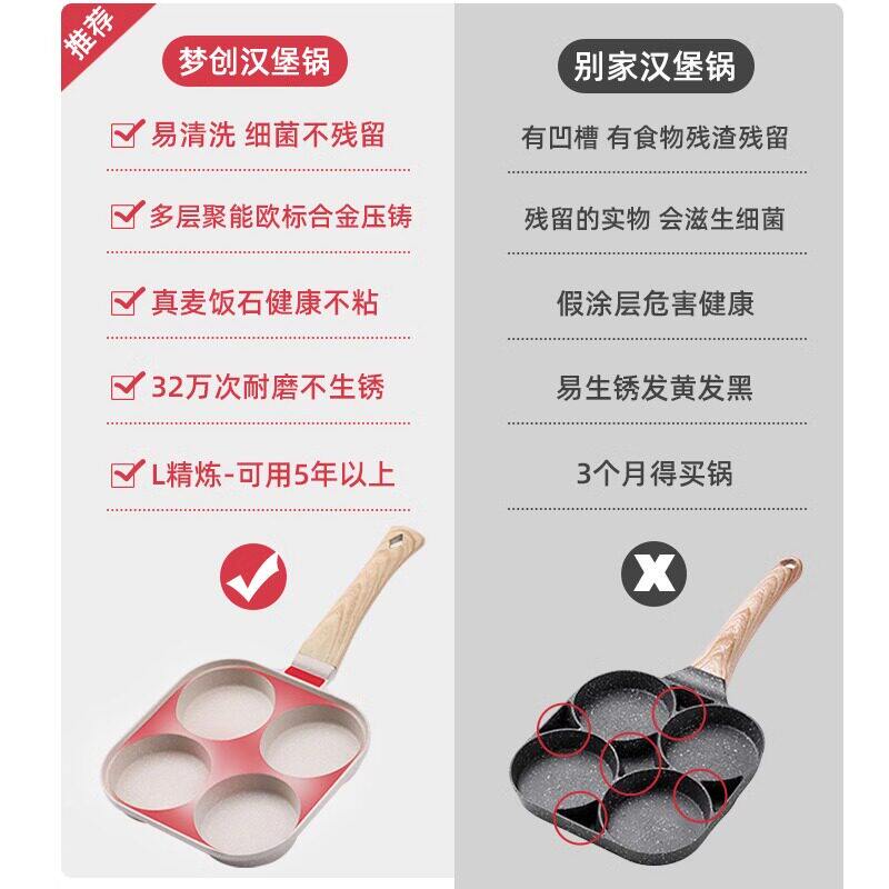 鸡蛋汉堡锅家用平底锅不粘锅小煎饼锅四孔煎锅早餐蛋堡锅煎蛋神器