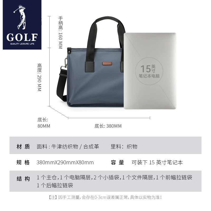 GOLF公文包男士商务帆布手提包大容量手拿电脑包休闲单肩包斜挎包