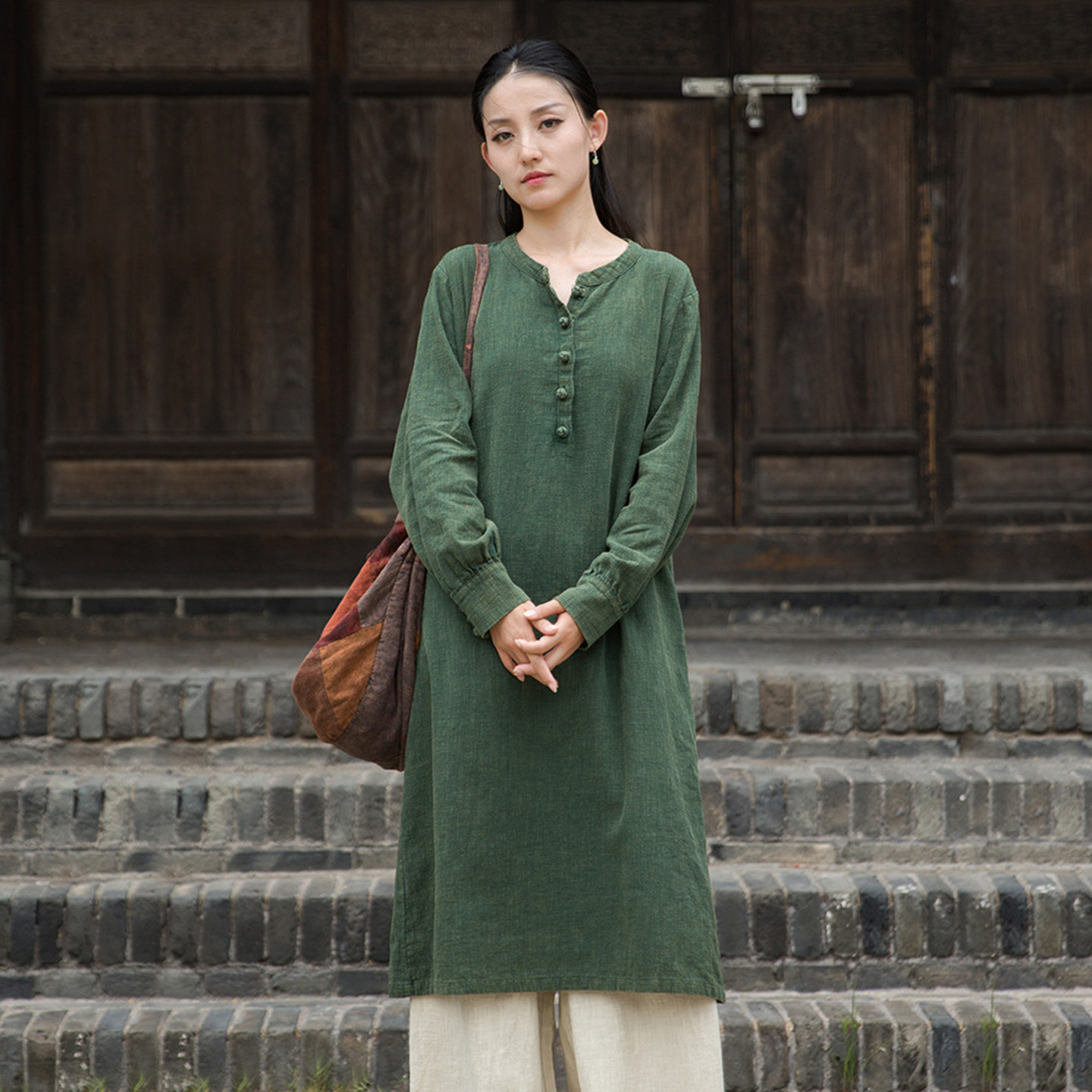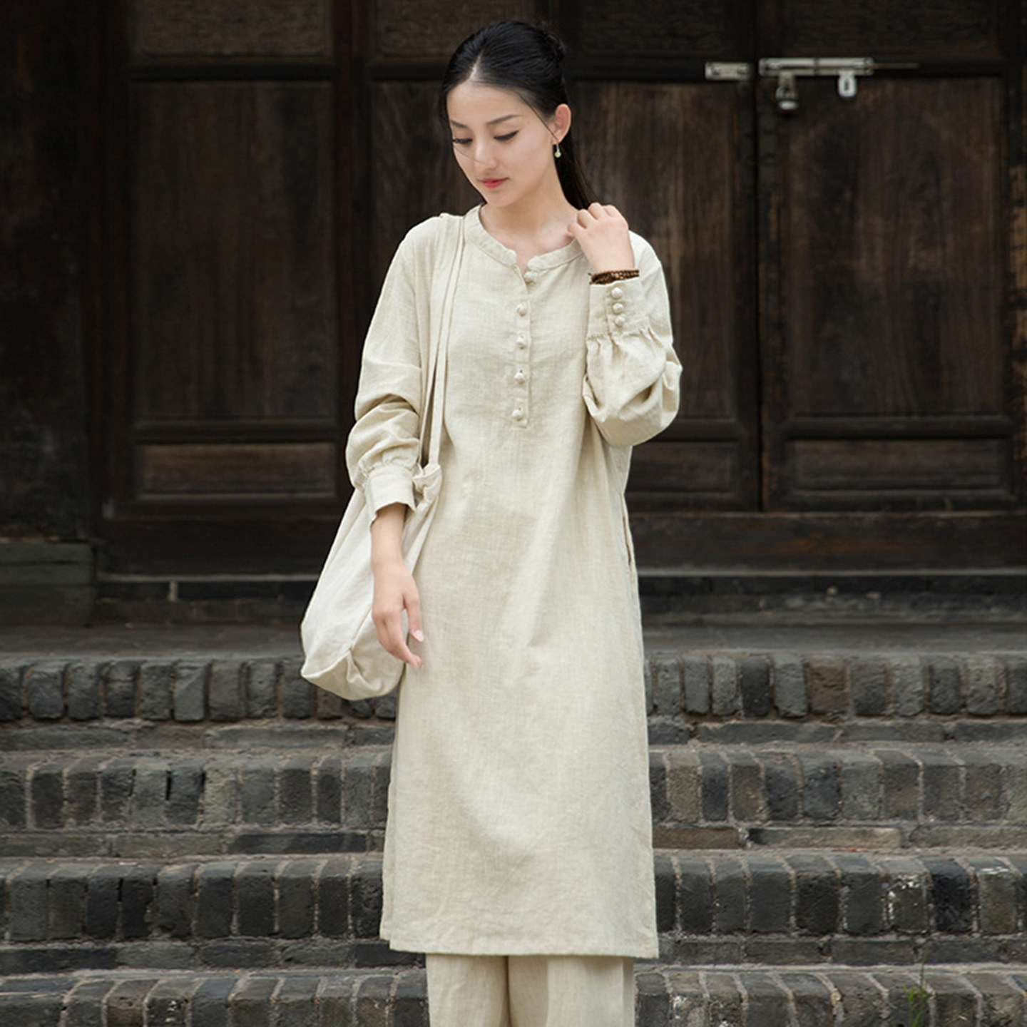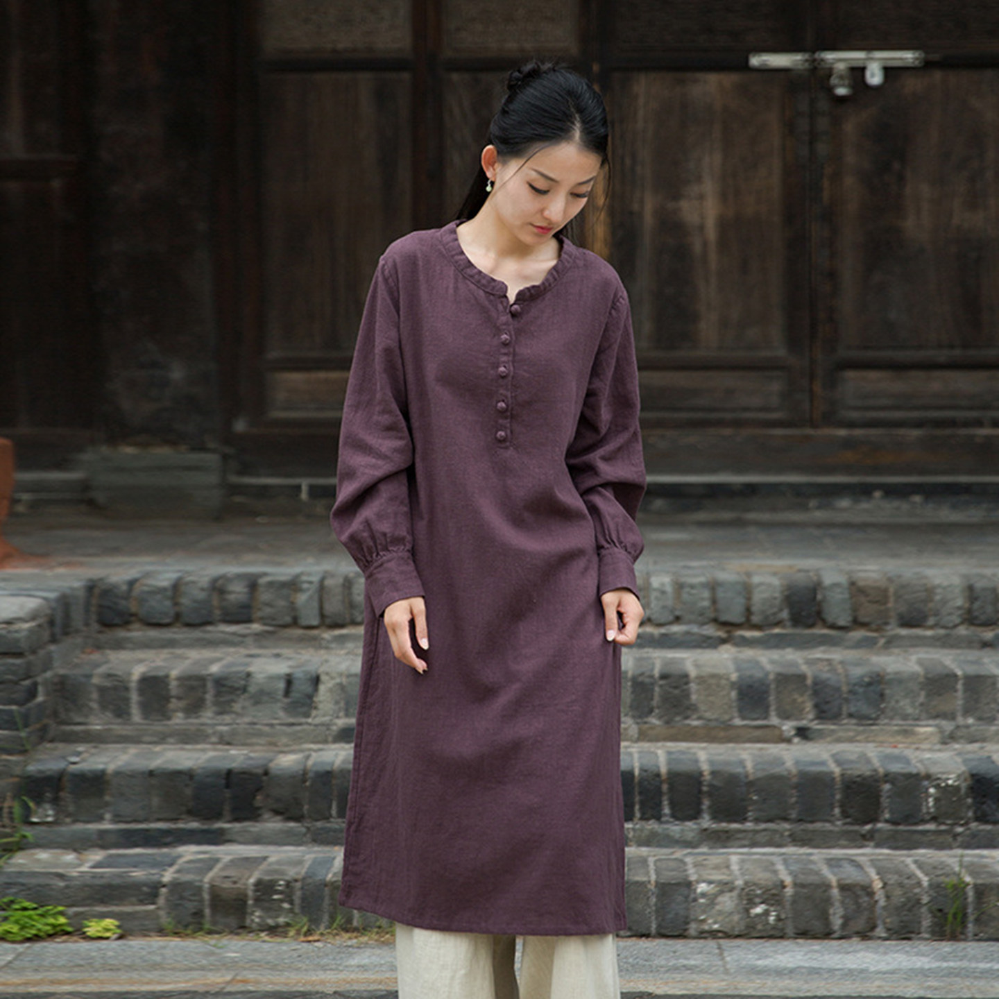 禅意佛系女装秋季新款旗袍改良版连衣裙复古新中式苎麻茶服长裙子