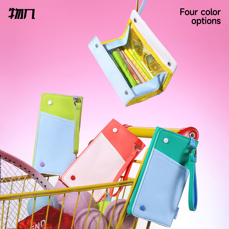 物几 手账笔袋一体式多功能随本便携纽扣大开口防污耐脏可笔插手提设计大容量双拼质感学生办公文具收纳袋