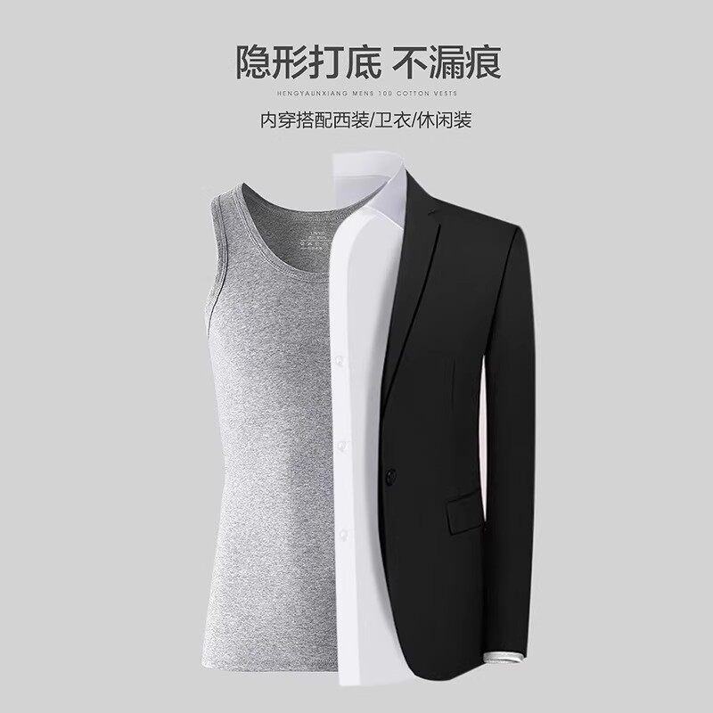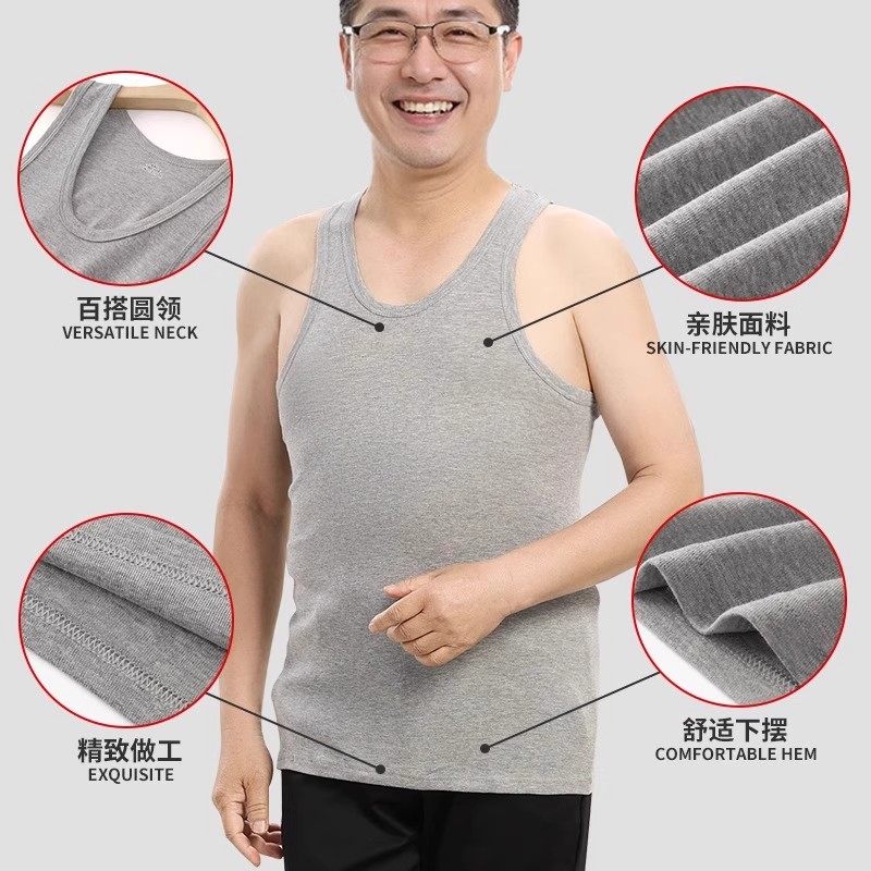 男士背心纯棉爸爸中老年人汗衫打底老头衫夏季白色黑色灰色薄款