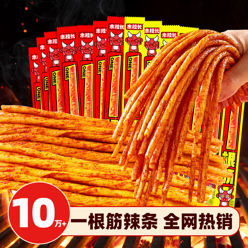 余校长一根筋辣条超长素牛筋长款麻辣小吃怀旧休闲食品网红零食