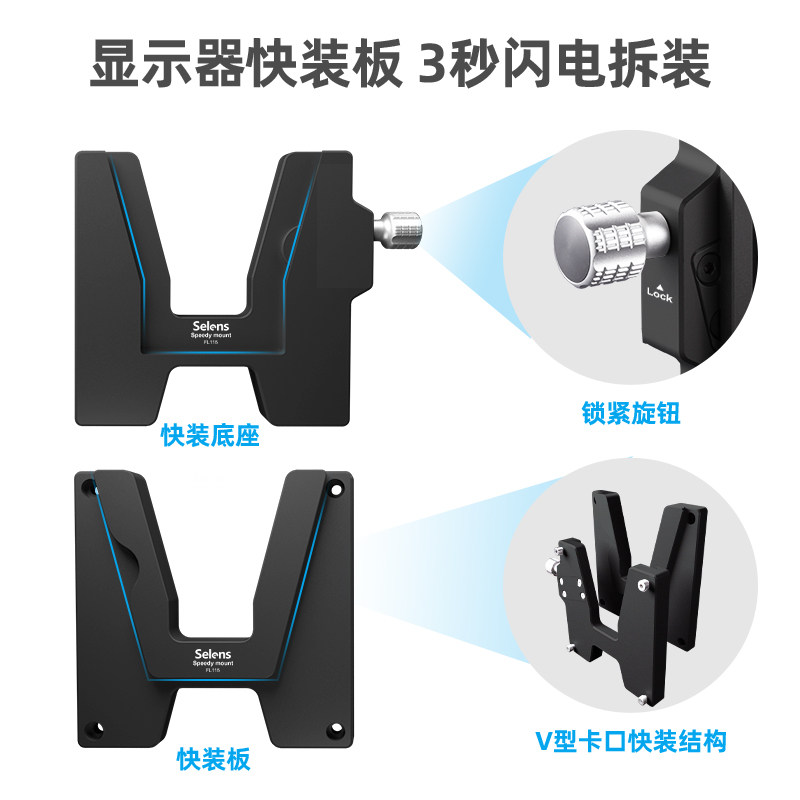 Selens/喜乐仕显示器快装支架电脑电视桌面快拆板旋转支架臂监视器通用底座影棚人物写真照片浏览显示屏支架