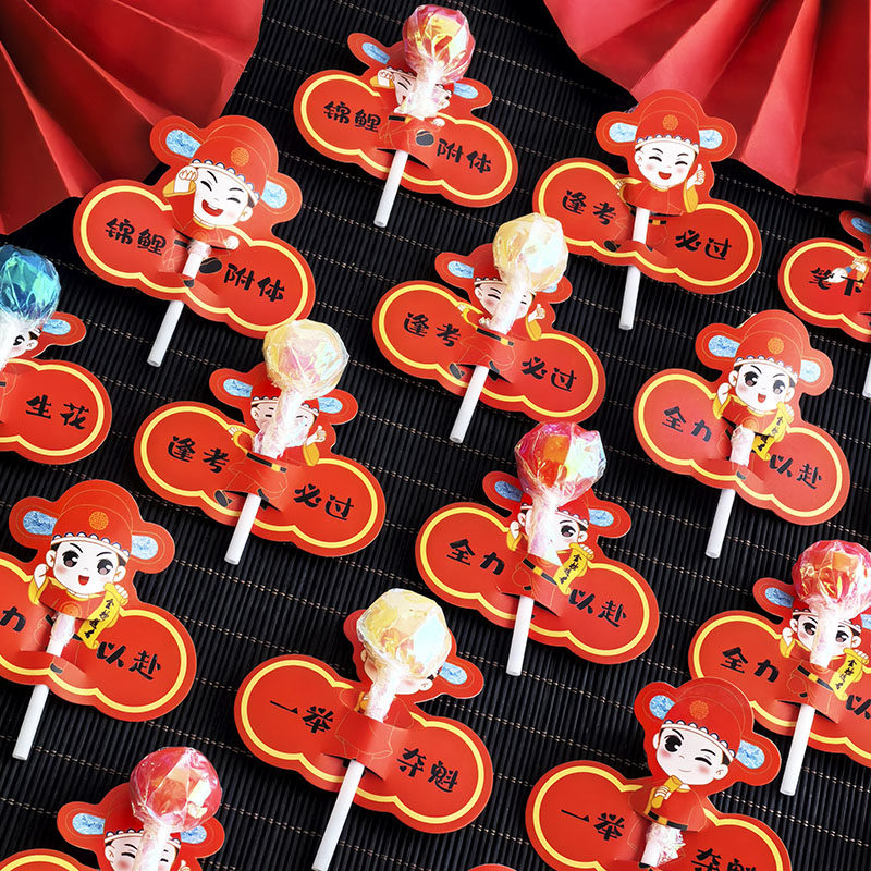 创意金榜题名棒棒糖插卡纸红色鼓励中考高考仪式感布置贺卡新年初中学生励志加油祝福糖果小礼物装饰卡片道具