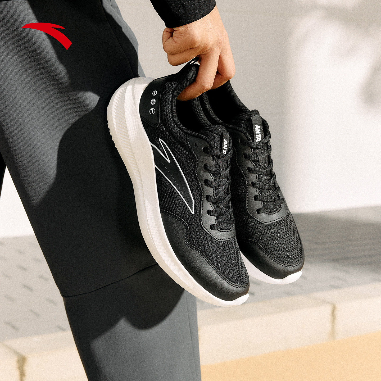 安踏男鞋运动鞋男款冬季新款官方旗舰正品黑色皮面男士跑步鞋子男