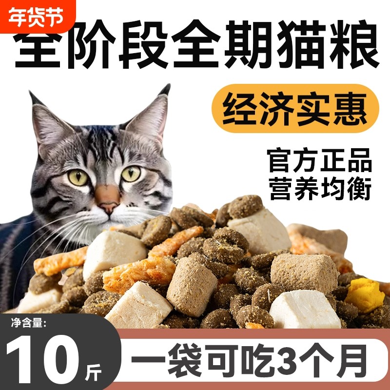 猫享冻干猫粮五拼鱼油成猫幼猫通用全价流浪猫5斤营养鱼肉兔肉20