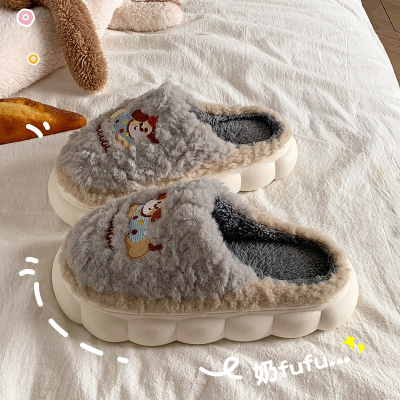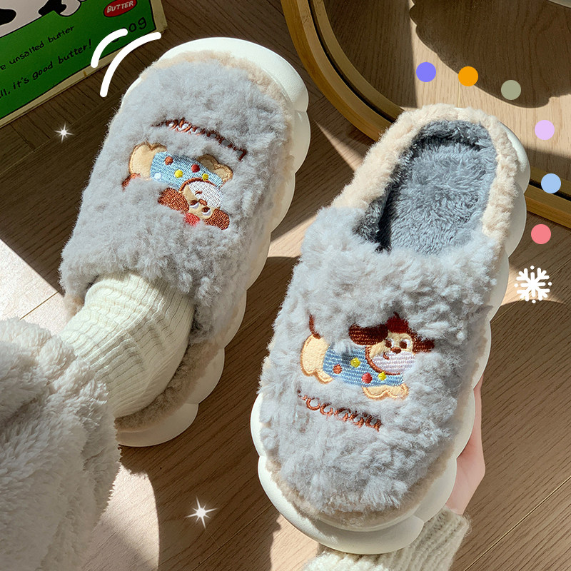 拖鞋2025新款秋冬厚底毛绒家用女士家居保暖防滑月子冬季棉女