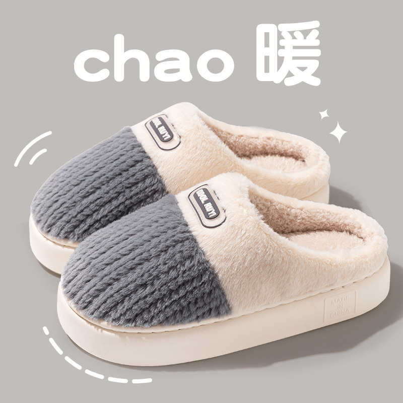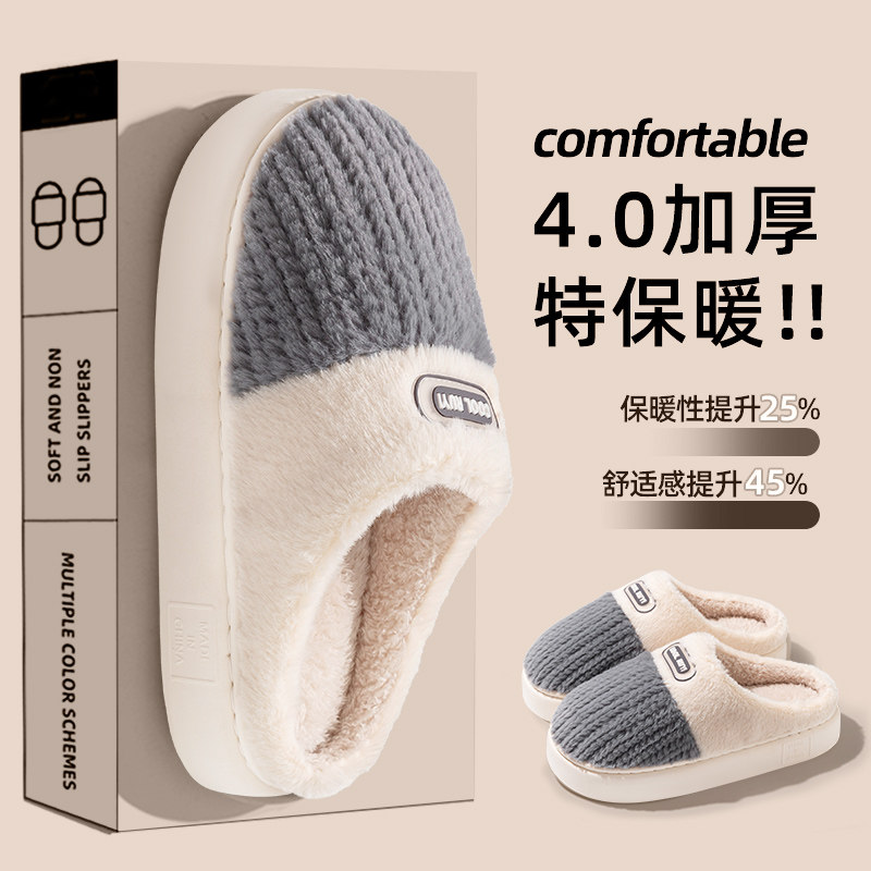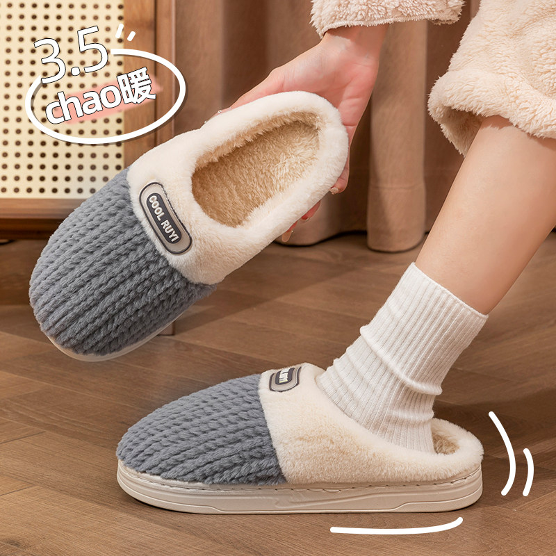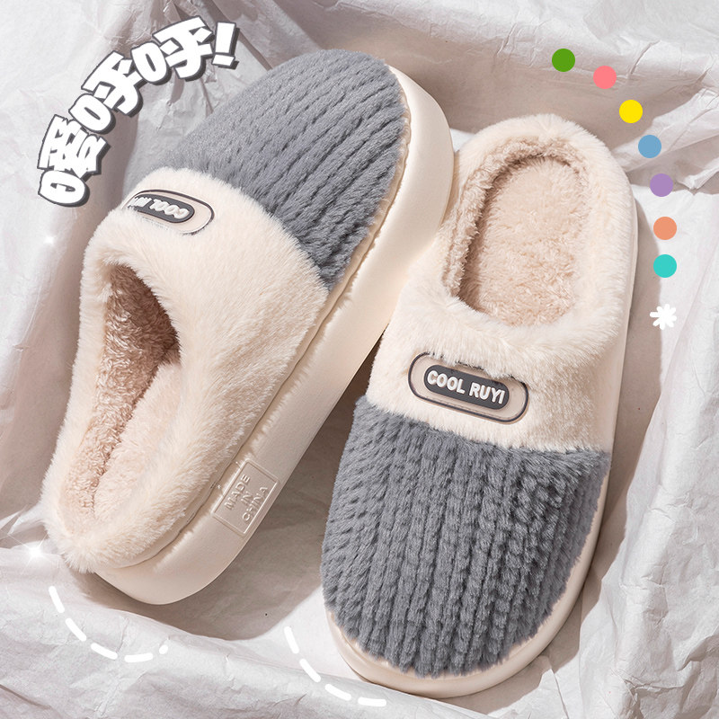 红豆踩屎感棉拖鞋女士秋冬季室内家居2025新款毛绒保暖情侣棉拖男