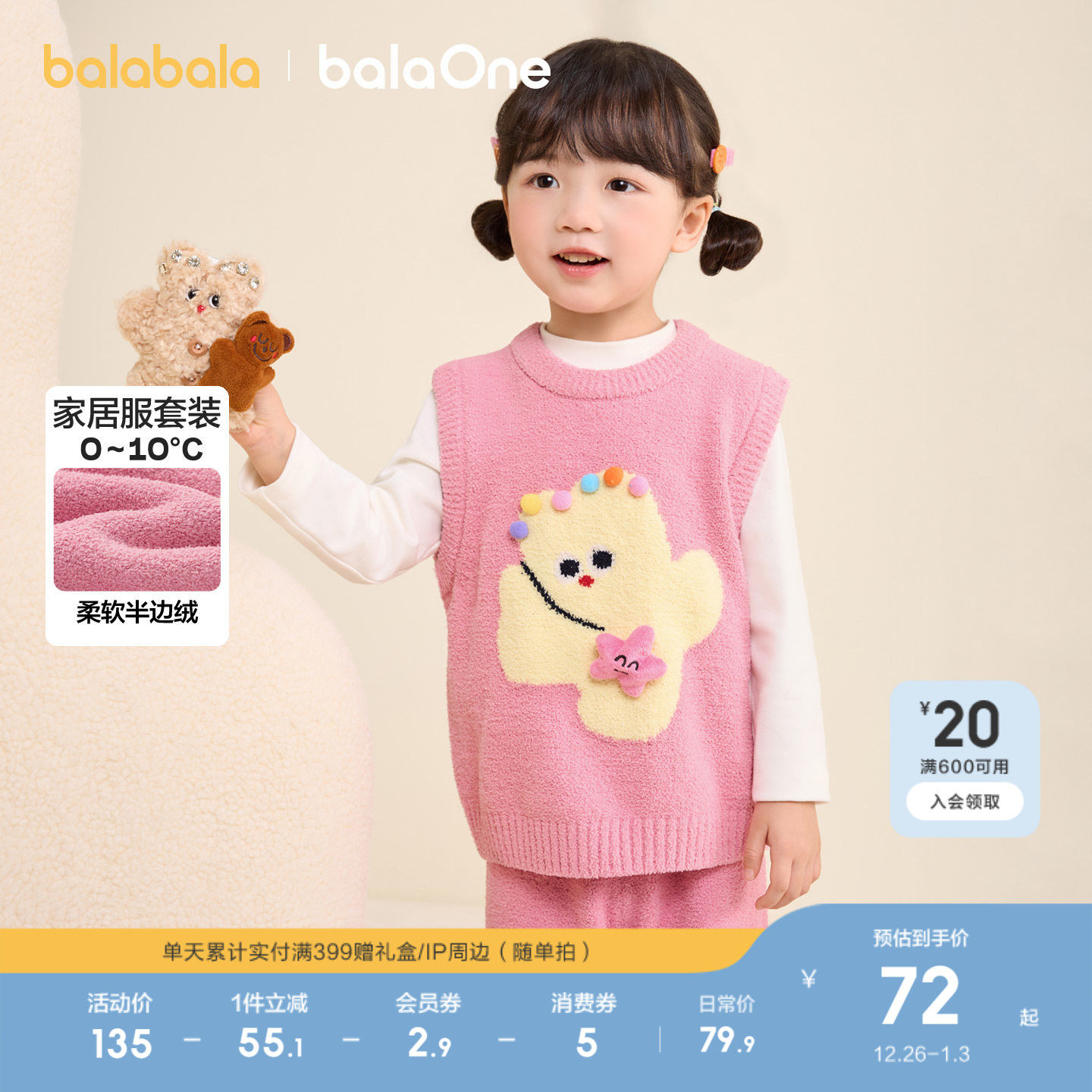 【balaOne】巴拉巴拉童装儿童马甲2025冬装新半边绒内搭保暖背心