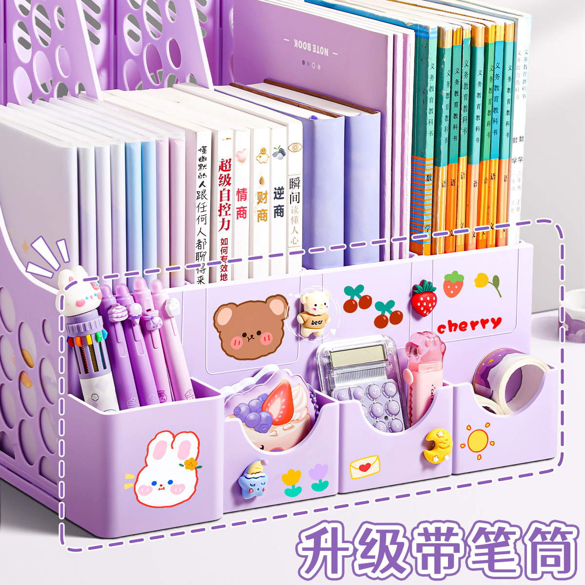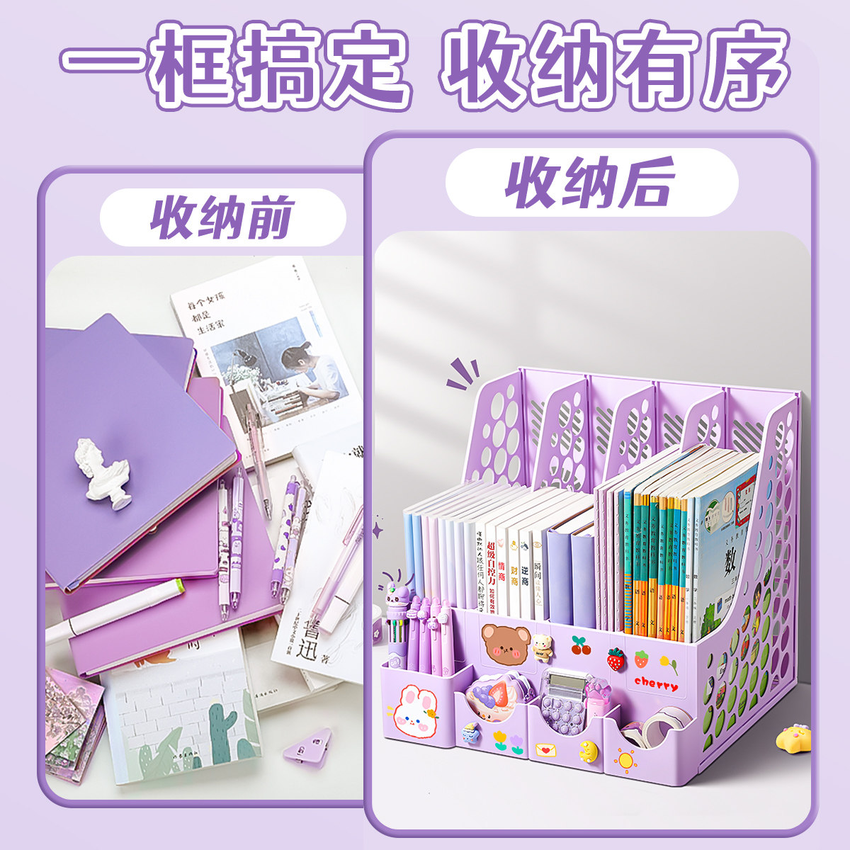 文件筐加厚高颜值书立架桌面文件框儿童学习四联多层四栏带笔筒办公用品塑料资料框办公室档案收纳整理文件架