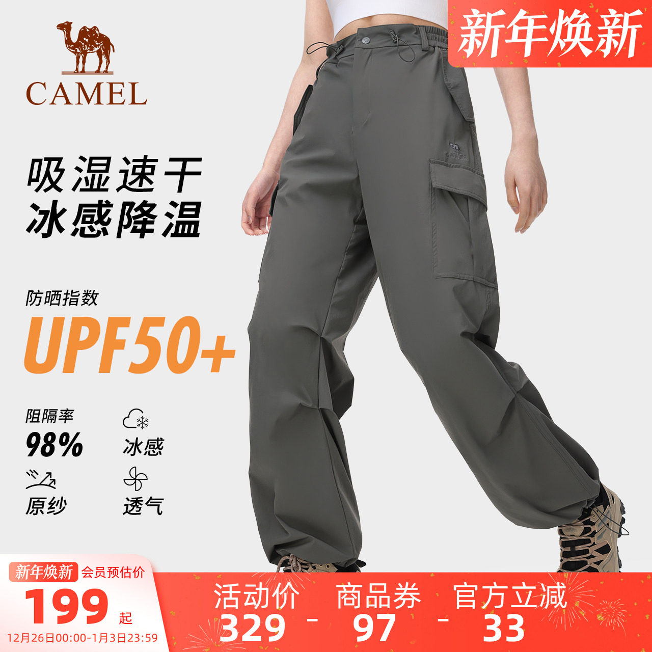 【伞兵裤】骆驼速干工装裤女宽松阔腿裤户外徒步登山长裤降落伞裤