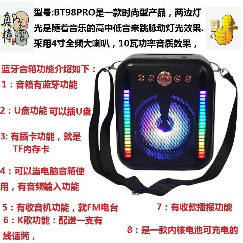 广场舞手提蓝牙便携大音量手拿带灯舞蹈背带式斜挎手机户外音箱
