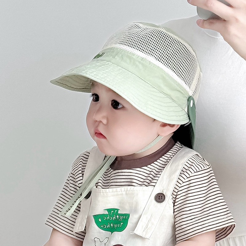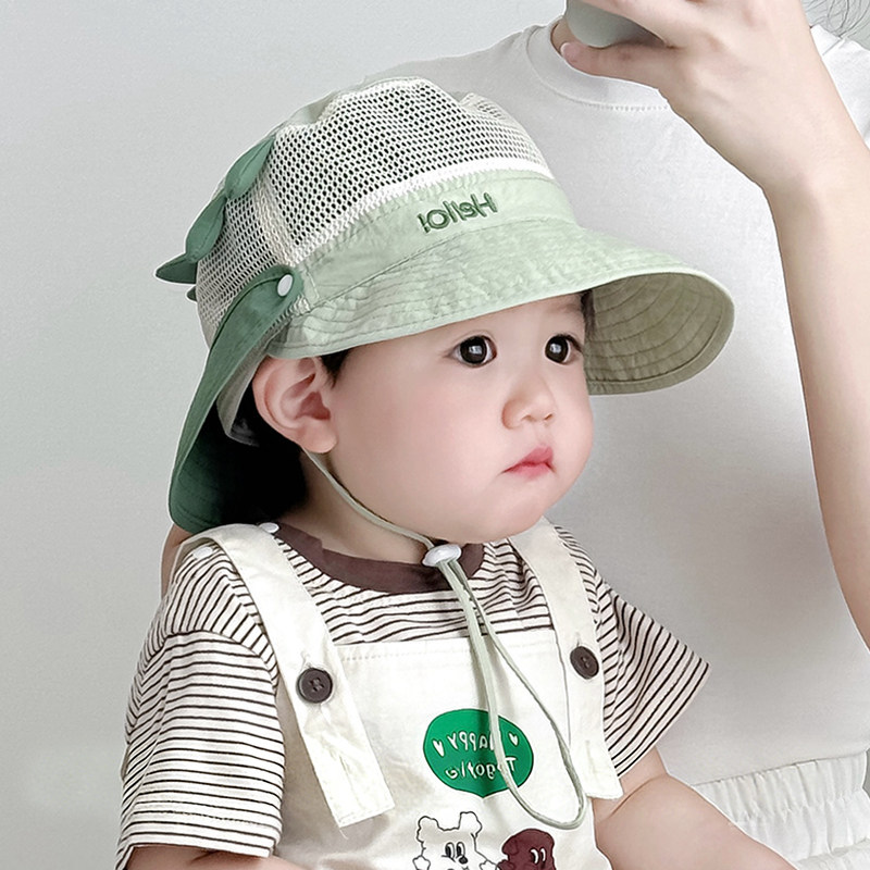 宝宝渔夫帽夏季男女童披肩遮阳帽儿童速干网眼婴儿防晒太阳帽大檐