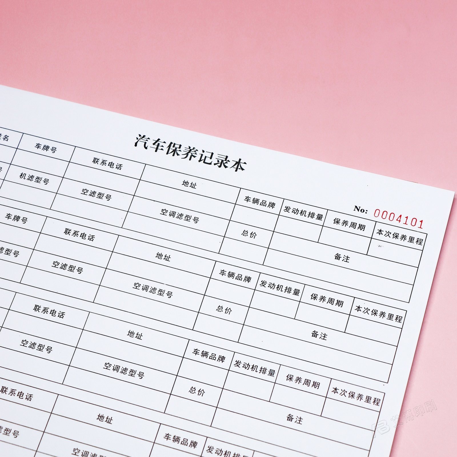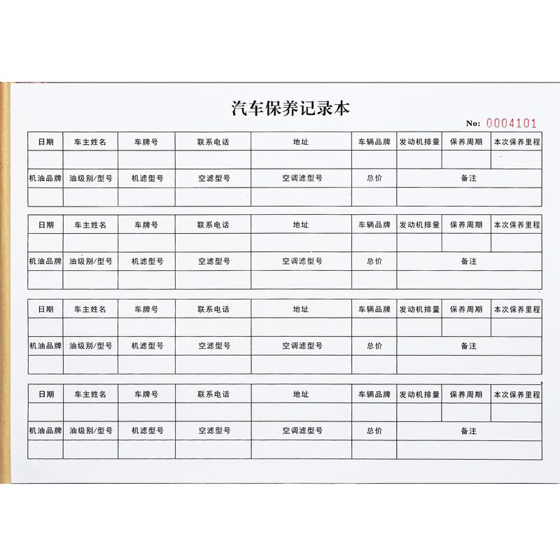 4S店顾客汽车保养周期记录表A4修理厂维保车辆客户信息资料登记本