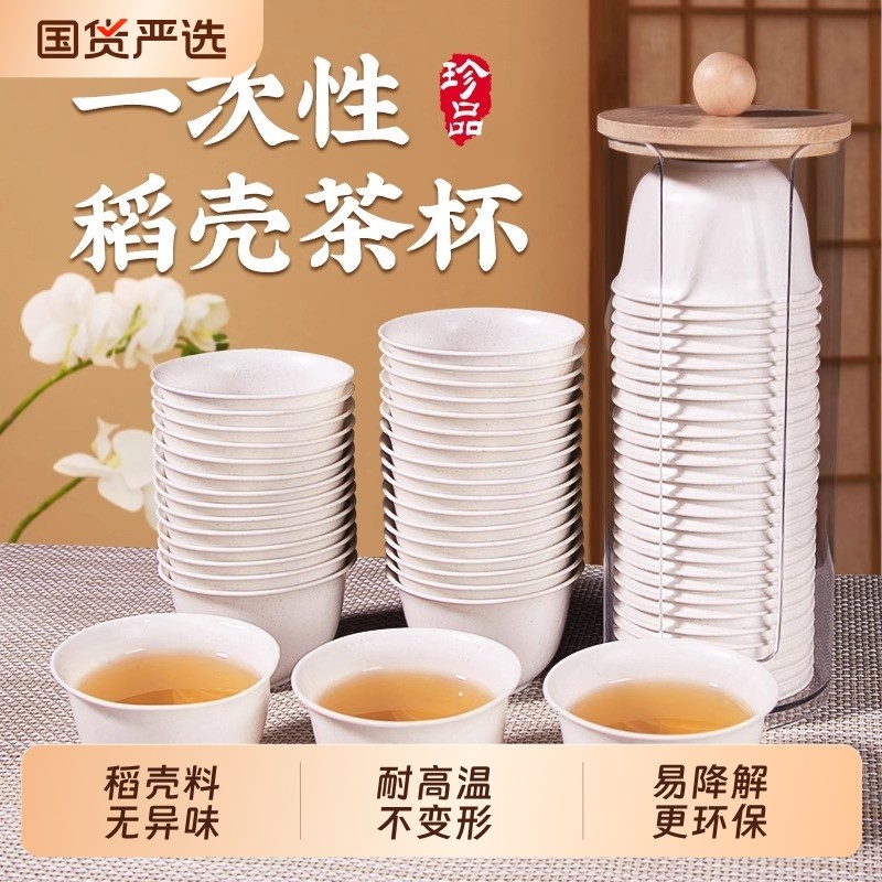 一次性功夫茶杯加厚隔热精致高级饮茶小杯子环保稻壳杯小号品茗杯