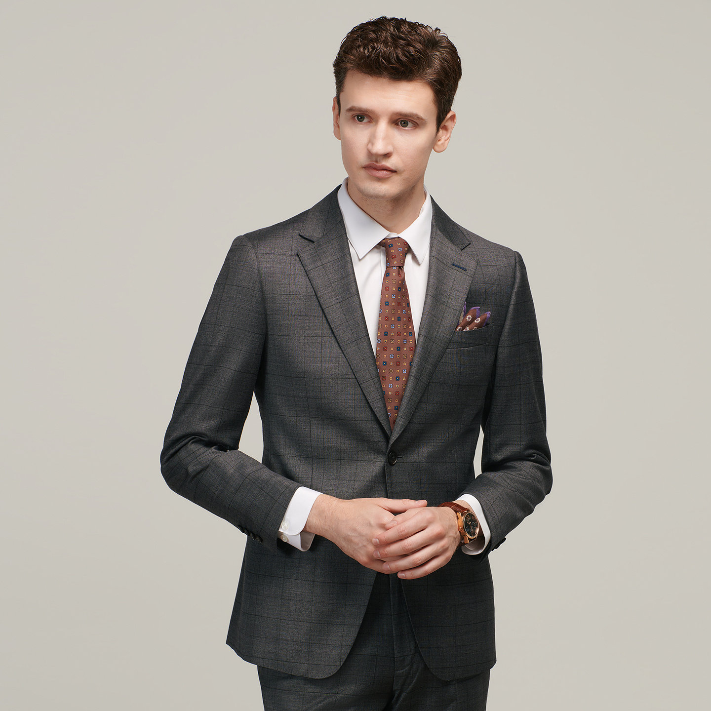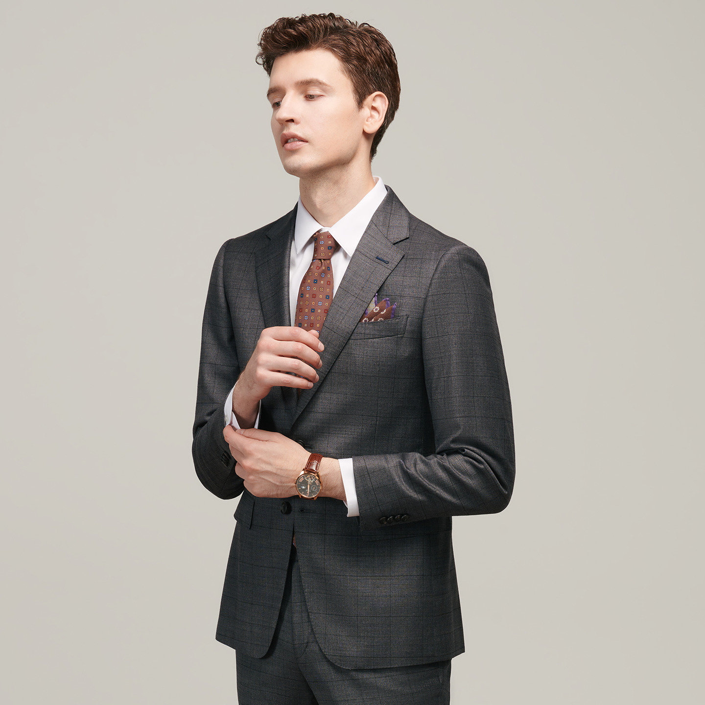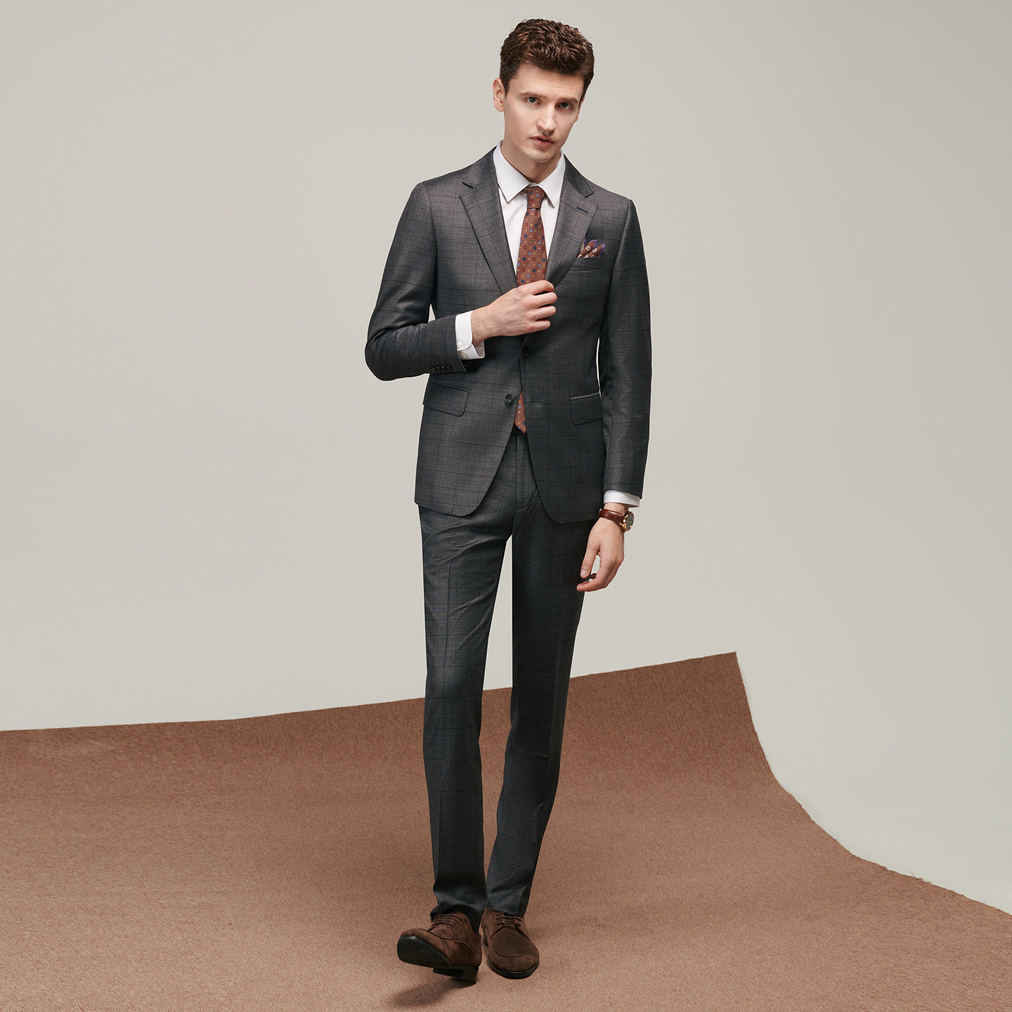 JODOLL乔顿男【绵羊毛桑蚕丝】西服套装上衣商务修身格子西装外套