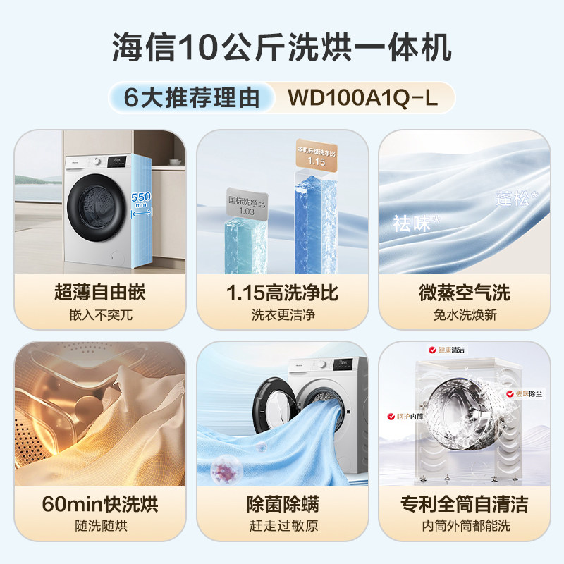 海信9/10公斤洗烘干一体滚筒洗衣机全自动家用超薄变频A1Q自清洁