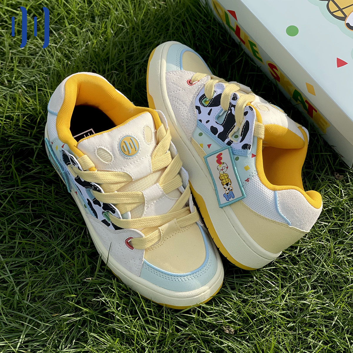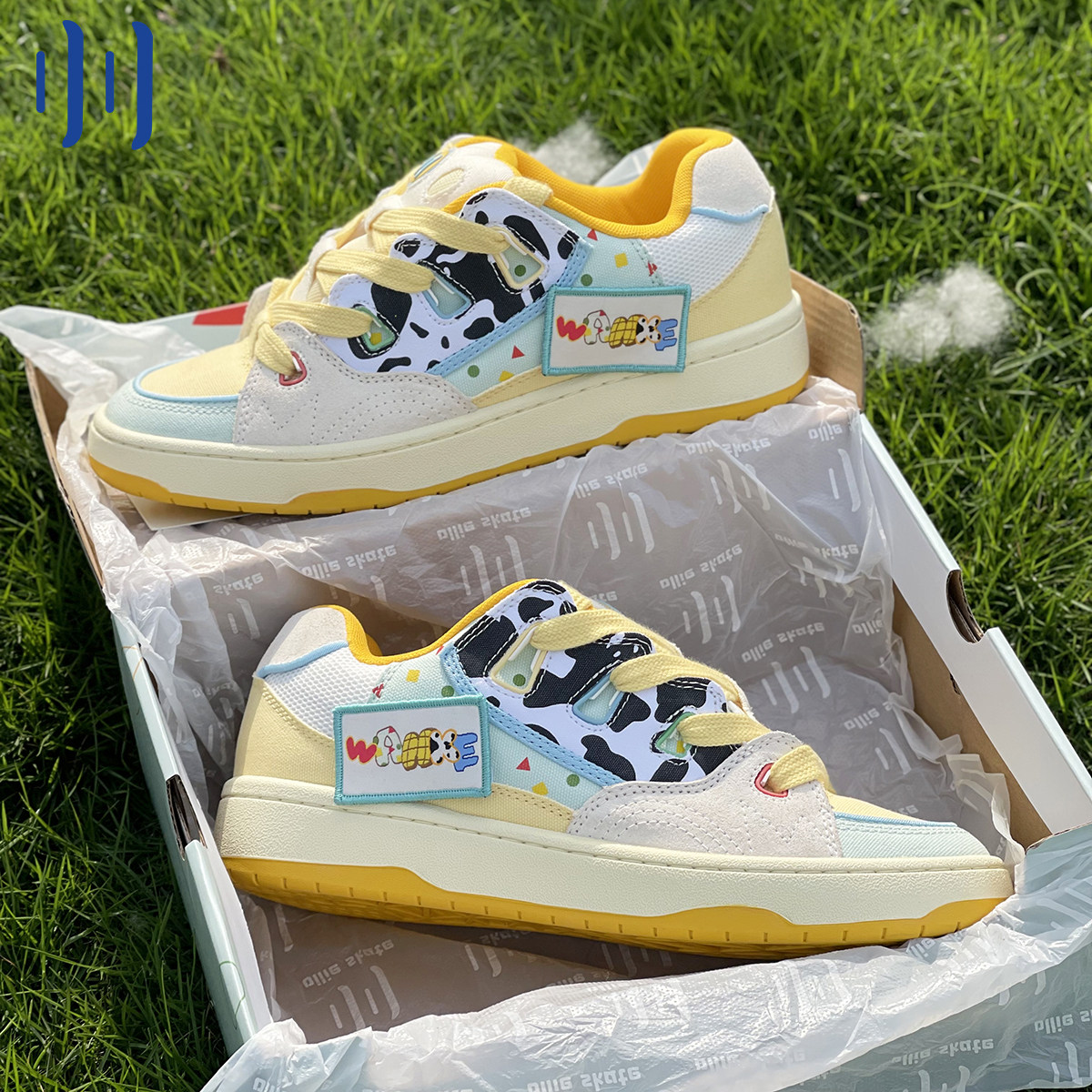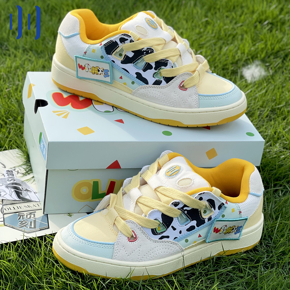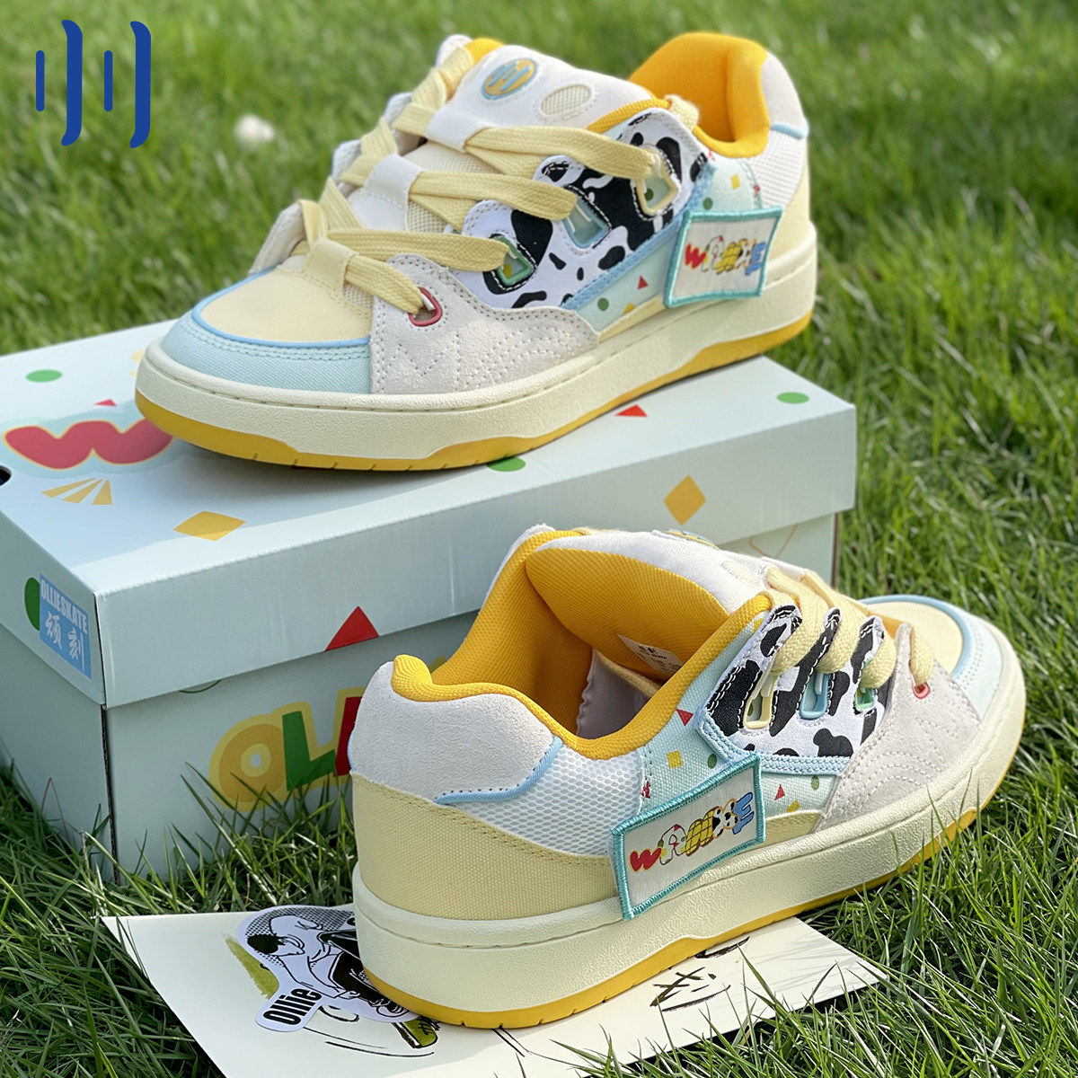 顽刻官方面包鞋奶牛小新配色复古低帮男女国潮滑板鞋