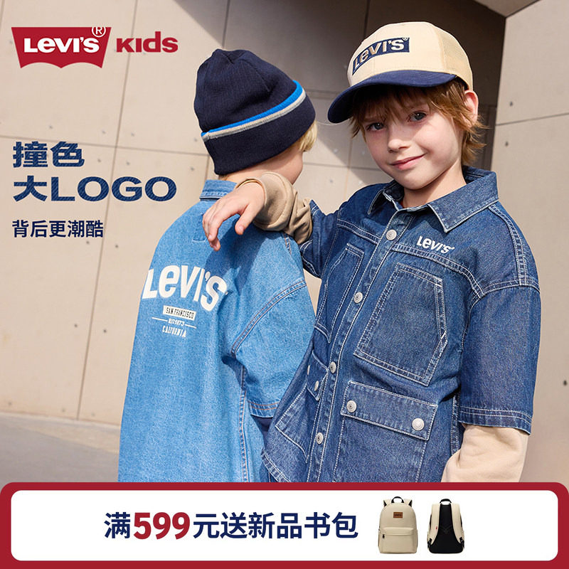 Levi's李维斯儿童牛仔衬衫童装2026秋季新款拼接袖子运动服外套潮