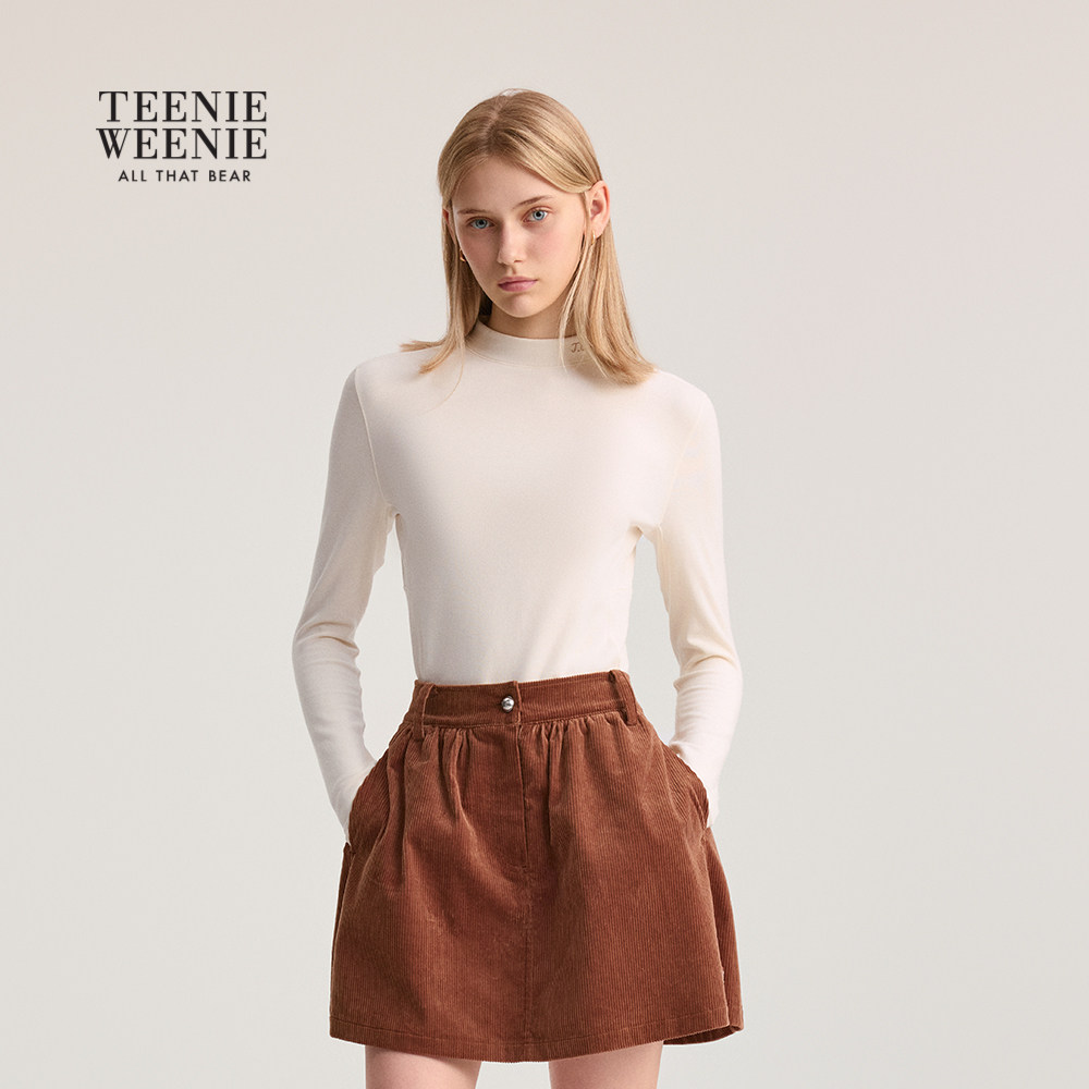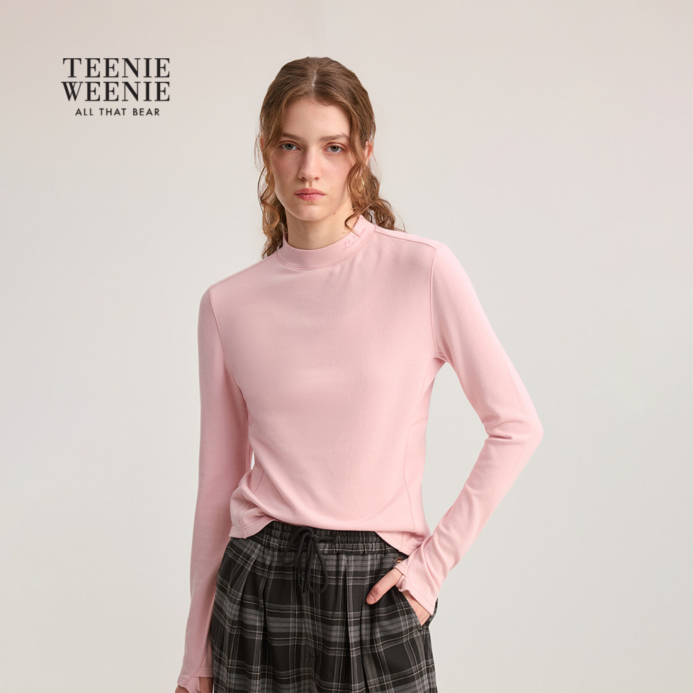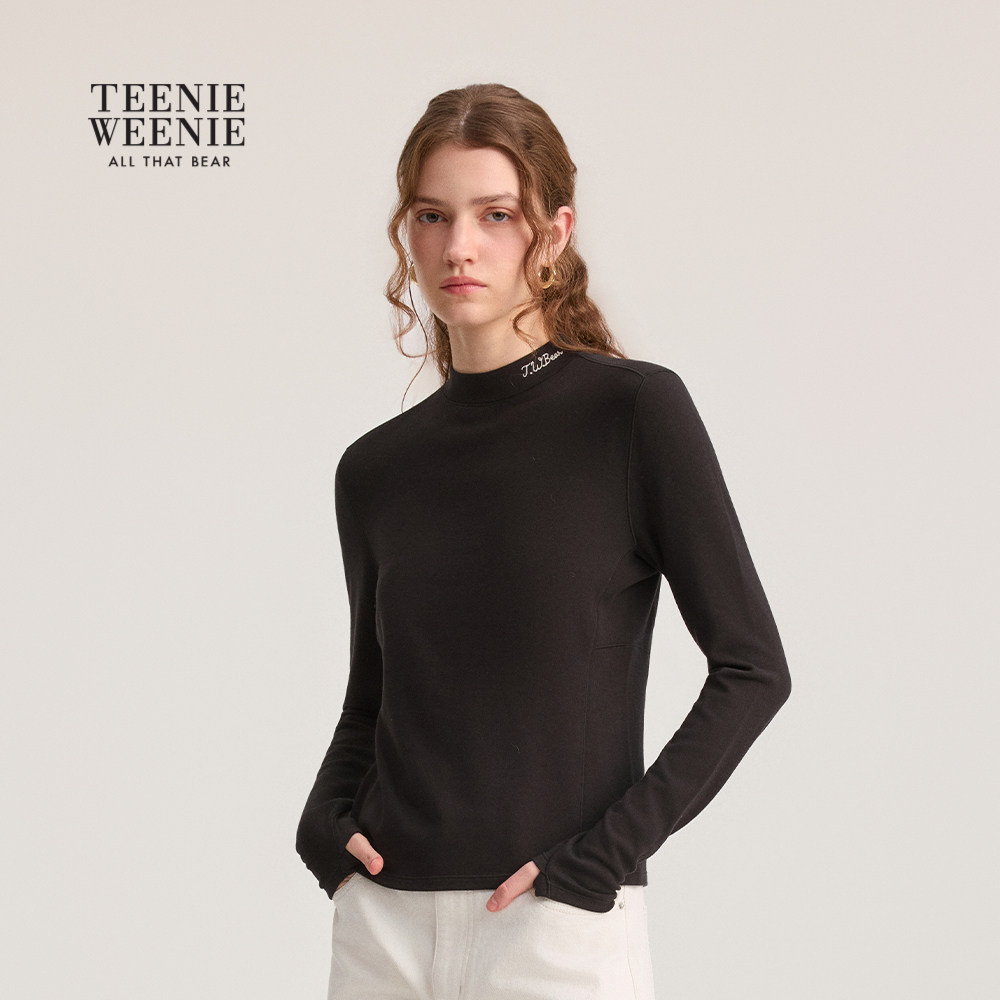 TeenieWeenie小熊女装T恤秋冬季小高领抓绒长袖基础款打底衫上衣