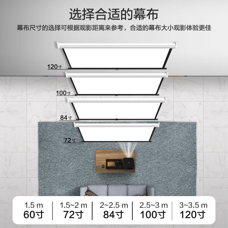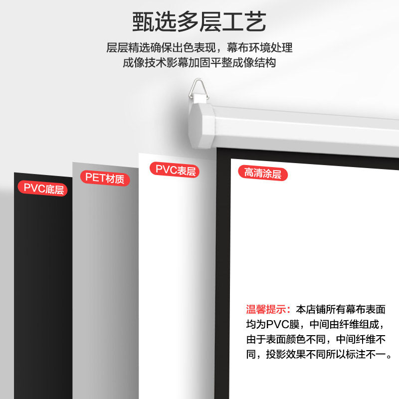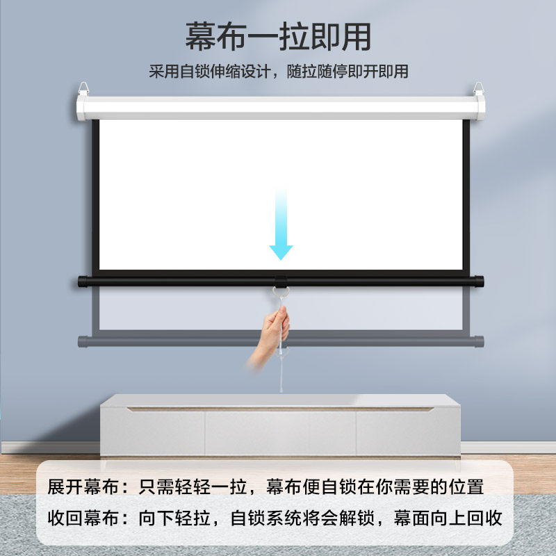 煎果手动幕布投影幕布84寸100寸120寸手拉升降家用投影仪幕布高清办公投影屏幕