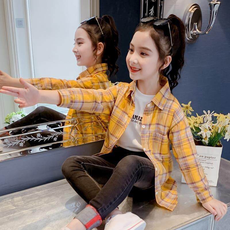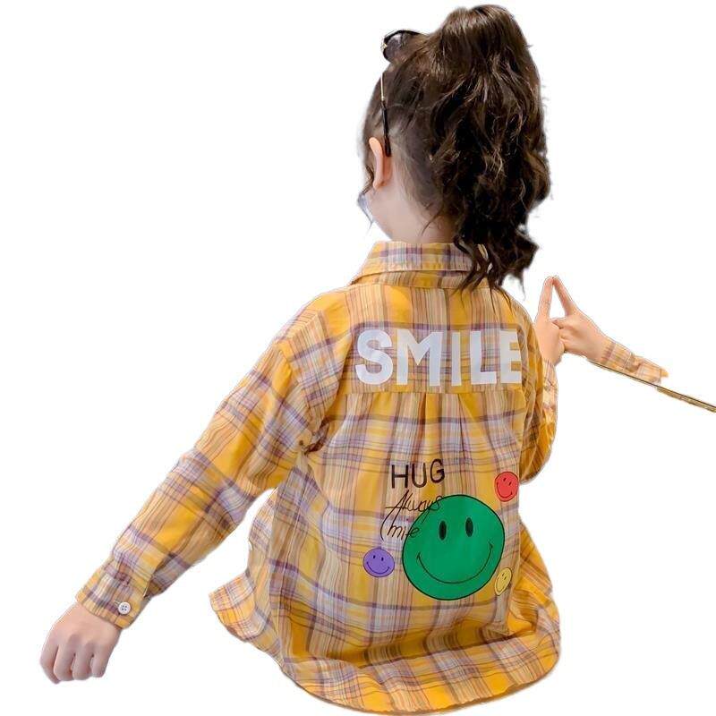 2025新款春秋装女童格子衬衫秋季儿童洋气长袖棉衬衣小女孩上衣