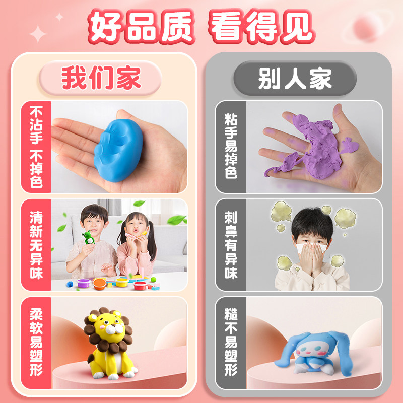 白色超轻粘土500小学生专用安全温和儿童彩泥橡皮泥diy材料大包装玩具太空泥黏土象皮泥24单色补充装工具包