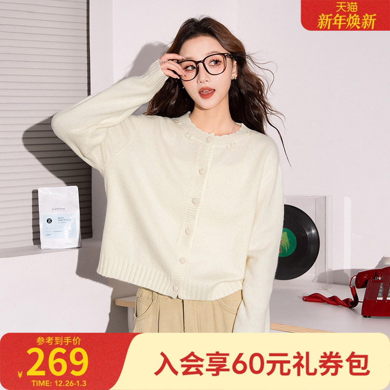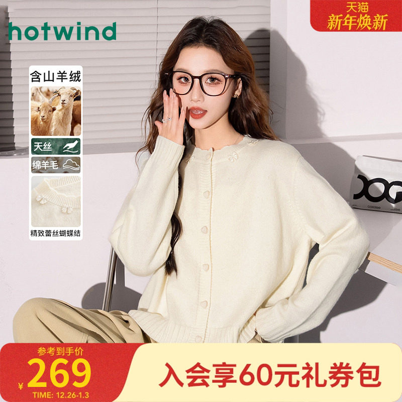 热风女士品质山羊绒天丝温柔减龄针织开衫秋冬女款千金风休闲外套