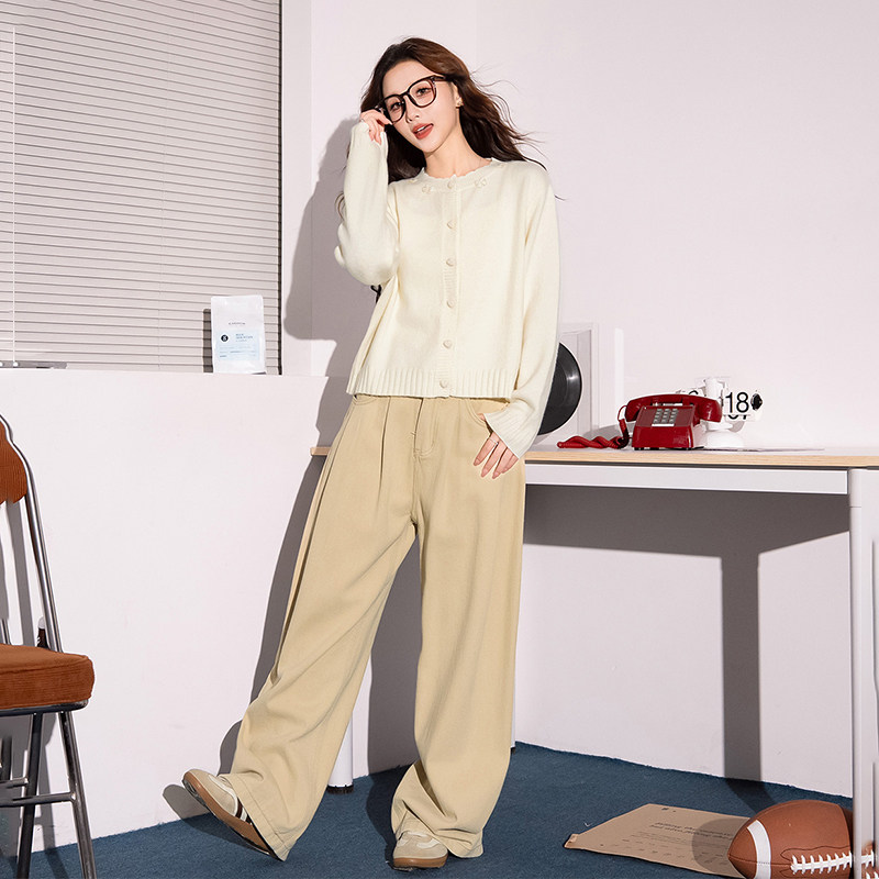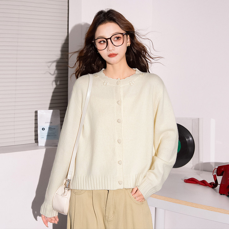 春秋薄款羊毛针织开衫女韩版圆领宽松短款羊绒衫外搭毛衣外套上衣