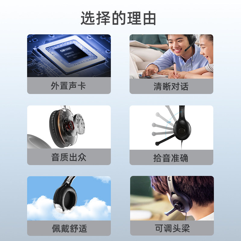漫步者USB K800电脑耳机头戴式网课学习英语听力耳机隔音电脑游戏